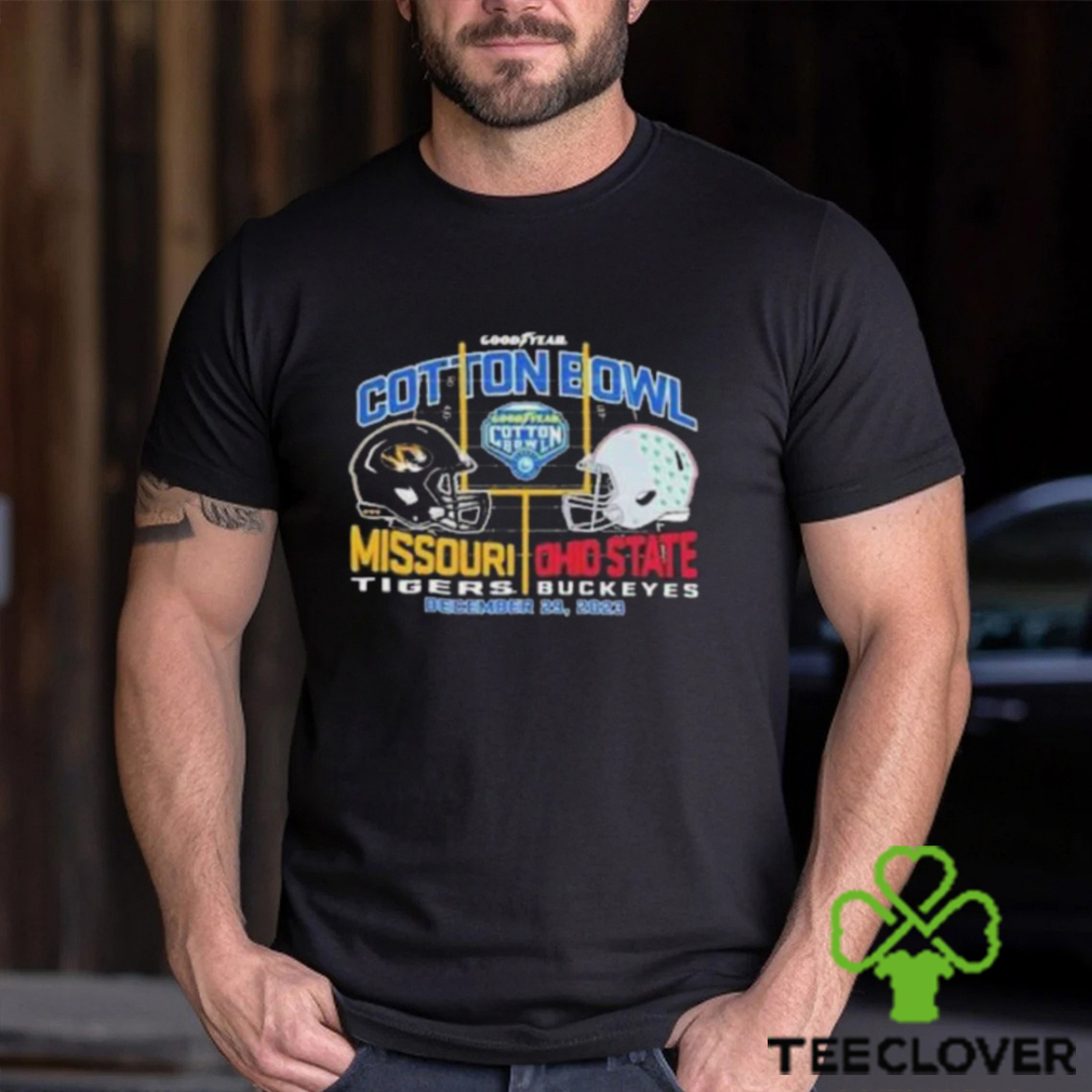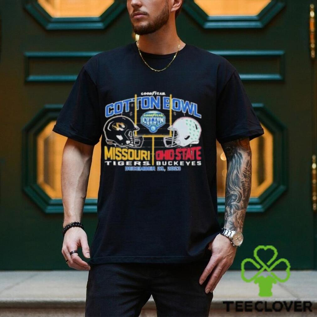 ()2023 Cotton Bowl Missouri Tigers vs Ohio State Buckeyes Dueling Head To Head Helmet Unisex T Shirt hoodie, tank top, sweater and long sleeve t-shirt
