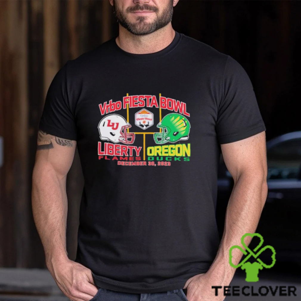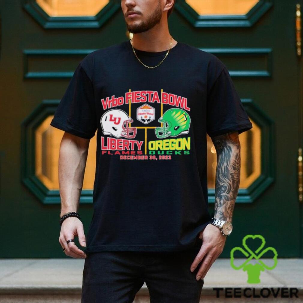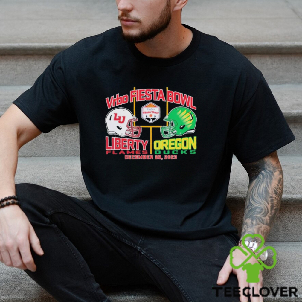 2024 Fiesta Bowl Liberty Flames vs. Oregon Ducks Dueling Helmet Shirt