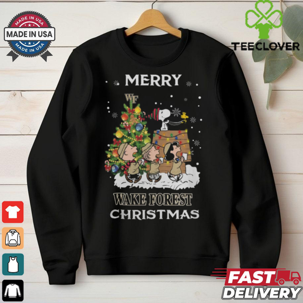 ()2024 Wake Forest Demon Deacons Snoopy And Friends Merry Christmas Shirt hoodie, tank top, sweater and long sleeve t-shirt: best style for you