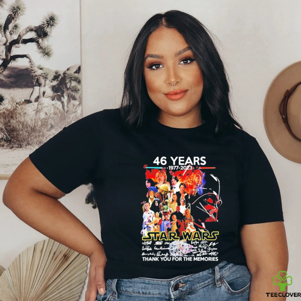 ()46 Years Star Wars 1977 2023 All Members Signature Thank You For The Memories Shirt, Hoodie, Sweater, Vneck, Unisex and T-shirt