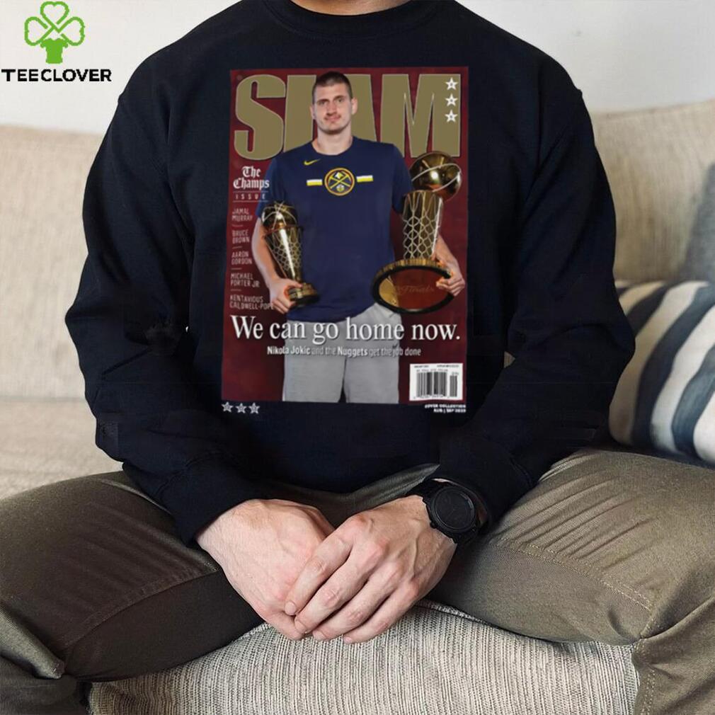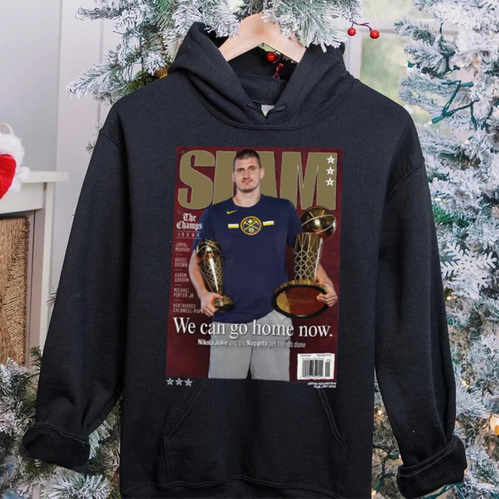 I do not remember Christmas Day itself that year, but the events around the’47 Men’s Denver Nuggets Slam Magazine T Shirt this holiday changed my life forever. I was living in Los Angles at the time and was dirt poor as I was very underemployed. I did not have any ambition, but was content. I had a new girl friend (we had been dating for not yet six weeks). I was too poor to buy a Christmas tree. It had been raining for about a week, and was expected to raining for the next week (for those of you that do not know the weather for Los Angeles, this was highly unusual). Three days before Christmas I was driving around with my girlfriend doing some last minute Christmas shopping, when an announcement came on the radio that they were giving away free Christmas trees at a location about one half mile from where we were. I looked at my girlfriend and she said, โYes, letโs go get a Christmas treeโ A couple left turns later, there we were. There was a truck with two trailers full of Christmas trees trying to give them away. The owner of the property where the truck was park had call the police and wanted them to be charged with trespassing. He had Christmas tree lot down the street and this was killing his business.