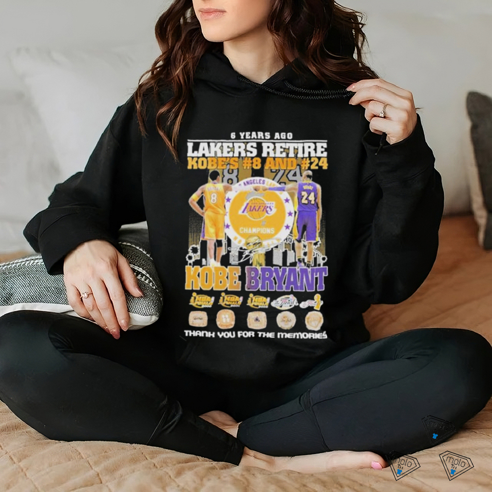 ()6 Years Ago Lakers Retire Kobe’s 8 And 24 Kobe Bryant Signatures Thank You For The Memories Logo T shirt, Hoodie, Sweater, Vneck, Unisex and T-shirt