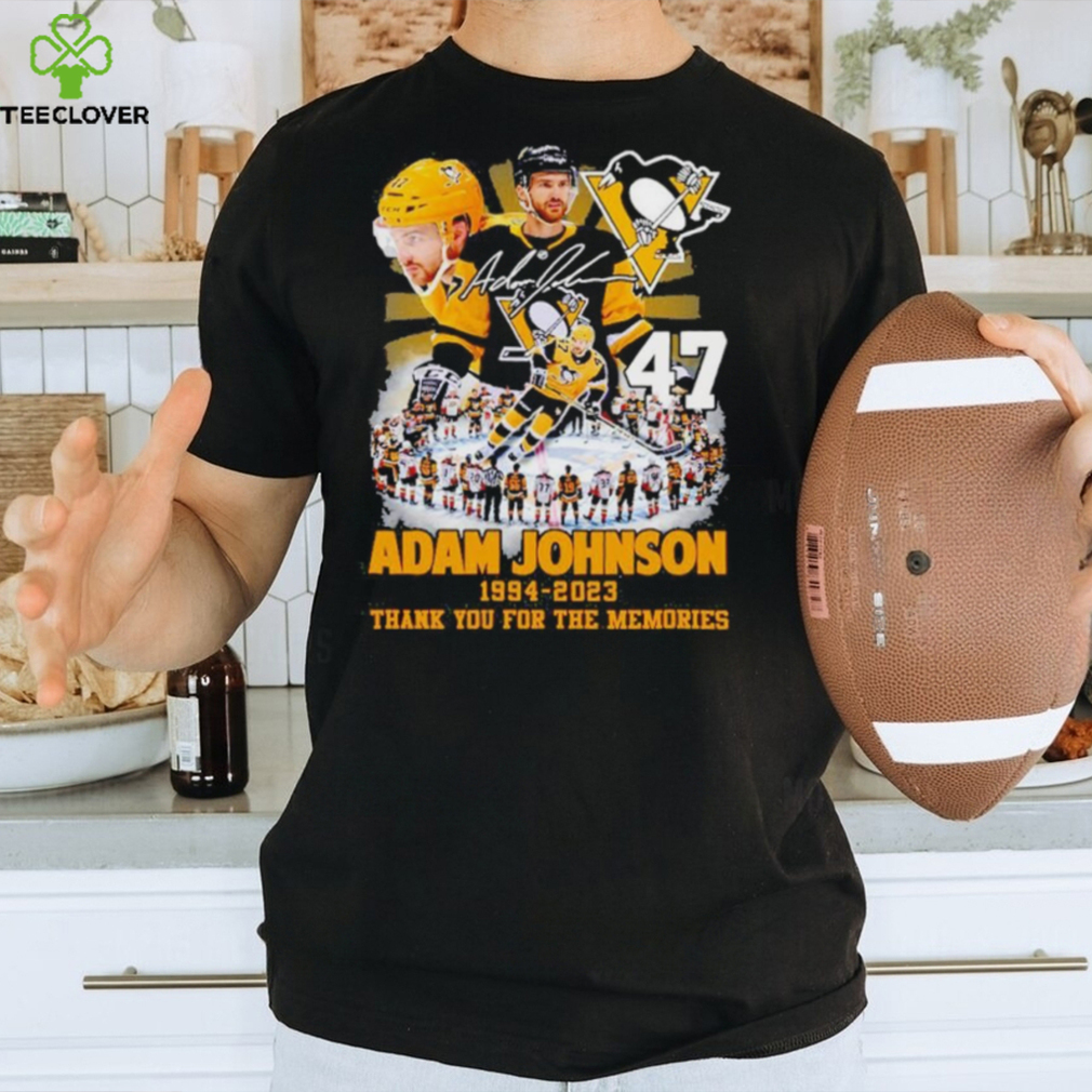 Geography. Pick the local team. If you are in say Miami, congratulations you can be a Dolphins fan and if you want to support teams across several levels, then the Dolphins for the NFL, Miami Hurricane among the power college programs and Florida International Panthers in the so-called Group of 5. If you are in an area not near an NFL team pick a Adam Johnson 1994 2023 Pittsburgh Penguins Thank You For The Memories T Shirt college and could even find enjoyment following a small regional team that plays in Division II or III or Division I FCS. Aesthetic reasons. You like the dark blue and orange combo of the Denver Broncos then that can be your team (also opens up the Boise State Broncos in college football). Iβm a Denver Broncos fan and Kansas City is a Adam Johnson 1994 2023 Pittsburgh Penguins Thank You For The Memories T ShirtΒ rival but I have to admit I like their home uniform. Like red and black? That gives you the Atlanta Falcons in the NFL, Texas Tech and Arkansas State and Cincinnati just off the top of my head. I donβt like the University of Texas but I happen to think their road uniform is one of the best in college football.
