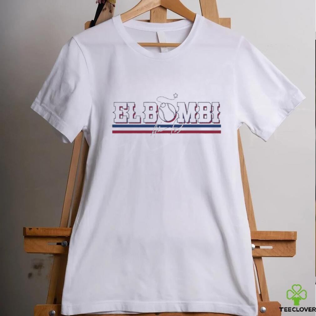 Now, one of the Adolis García Bombi Bomb Texas Shirt about this movie going around was the fact that the movie would have the most post credits scenes in any Marvel movie to date. And yes it did. The first one had Kraglin practicing how to use Yondu’s whistle, for he shoots it into Drax. The next one shows Ravenger leader Stakar Ogord reuniting with his original team. For anyone who was confused about what this meant, these people are the original Guardians of the Galaxy from the comics. These characters will reappear in future films. Then we had a scene with the Sovereigns queen, Ayesha, as she devises a new way to capture the Guardians- a thing called Adam. Yes- Adam is a reference to Adam Warlock. In this film we also got to see Howard the Duck and Cosmo the Space-Dog again, which was good. We then got a scene with Teen Groot, and that was pretty hilarious. The last scene is the most interesting. In the film Stan Lee has a cameo where he is speaking to some mysterious figures about his history in the Marvel Universe. Yes- the cameo and the after credits scene of the film reveal Stan Lee is playing the same character in all the MCU movies. He is acting as a watcher on earth. But the Watchers- they looked amazing and I hope this mean Uatu is coming!