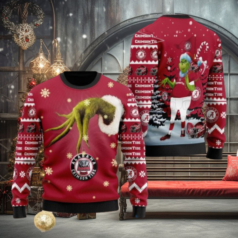 ()Alabama Crimson Tide Team Grinch Ugly Christmas 3D Sweater,