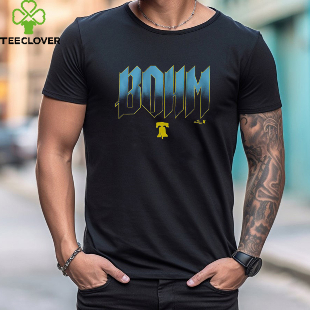 Focus on things that stretches your Alec Bohm Philadelphia City Edition Text Shirt . This can be achieved through by doing things like going to music concerts, traveling wide, reading wide, learning new things (which gives you a sense of achievement). For the same reason in 3), you will likely get used to material well-being very quickly (like a new house or a new car), instead, experiencing new things will give you a long term satisfaction when you recall them. Therefore, money can be a very powerful tool to buy you high quality experience, if you know how to utilize it carefully.