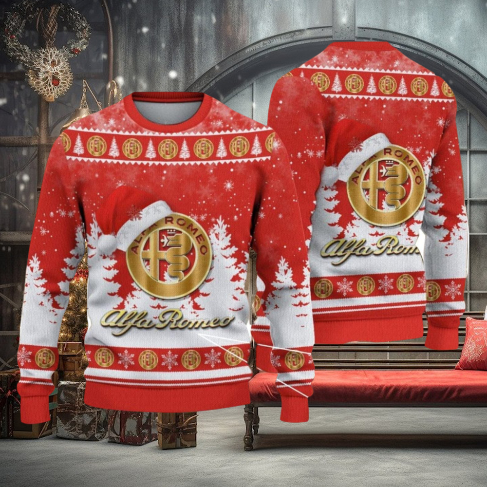 ()Alfa Romeo Red Logo Wearing Santa Hat Christmas Gift Ugly Christmas Sweater For Car Lover 3D Sweater,