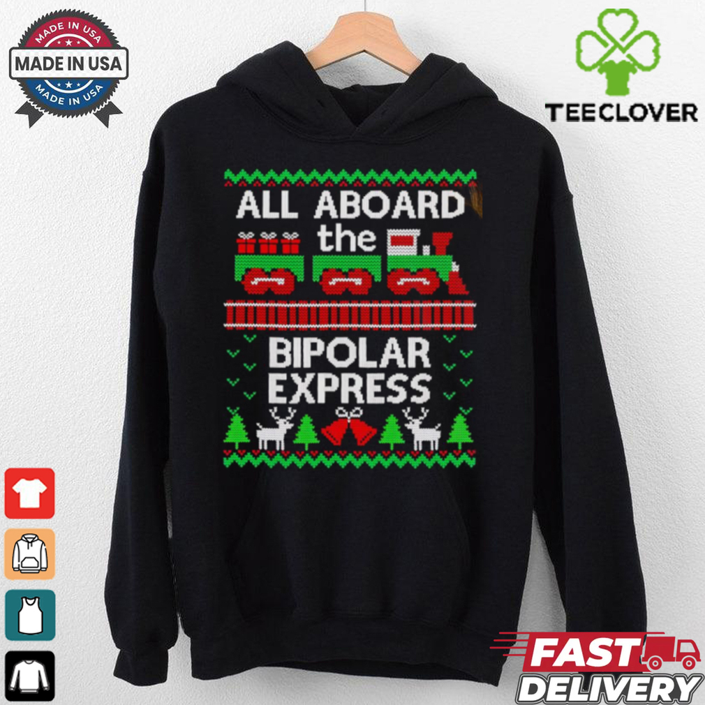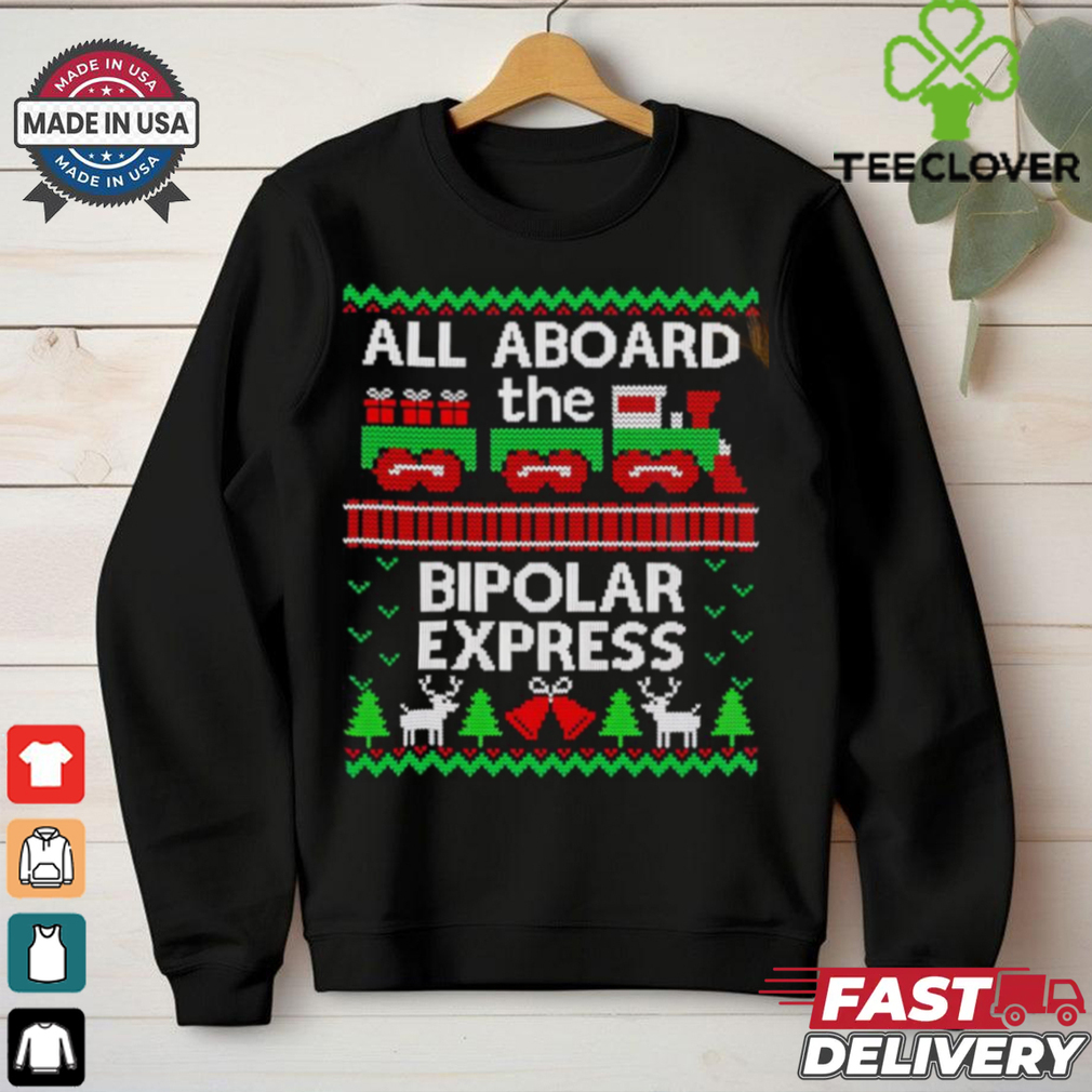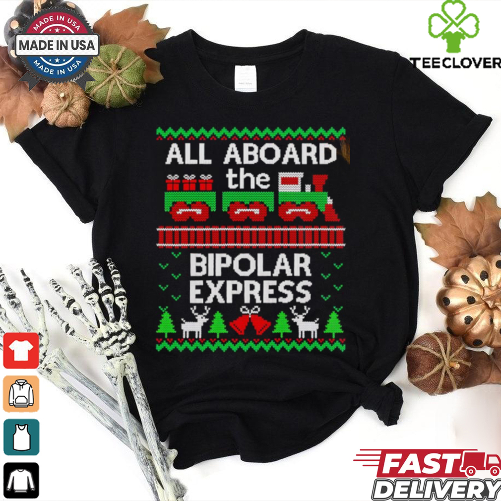 You really need to do your research before All aboard the bipolar express ugly Christmas shirt now days. Unfortunately many brands push poor quality products because of the name stamped on it. Check wheres its made first, then the materials used. If youβre interested in a good quality curated.Nowadays, more and more people shop online, especially for girls. Cosmetics, bags, clothes, etc. are all available online. You can choose what you like without going out.