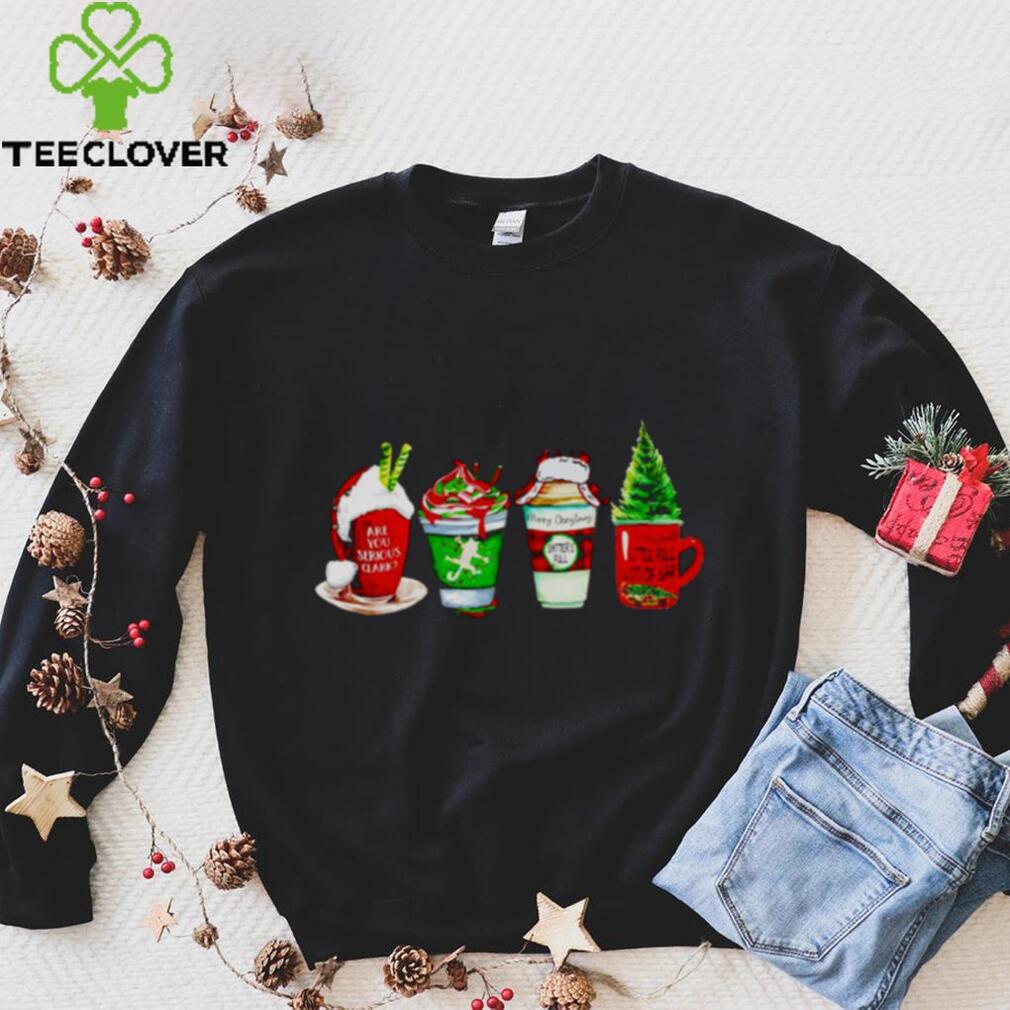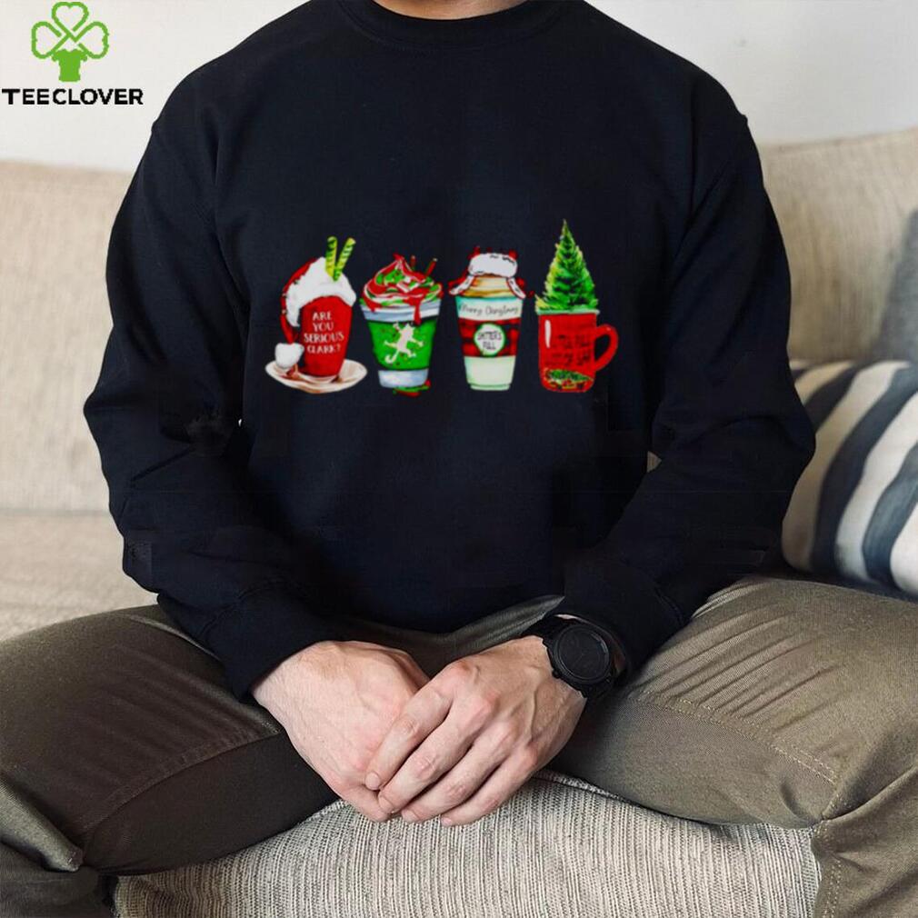 When I was quite small, my family were Jehovah’s Witnesses. My big brothers remembered their Catholic beginnings, they remembered magical Christmases. My little brother and I did not, we’d never been Catholic yet. We used to get very sad that all of our friends had lovely Christmas or Hanukkah, and we did not. We’d pout. My big brothers tried their best to console us. Our best friends lived across the ARE YOU SERIOUS CLARK COFFEE CHRISTMAS SHIRT . Their dad was not home much, but he was a very stern man. He had quite the temper (when we grew up, we realized that he was always drunk, but when we were small he was just scary). He had a Doberman called Rex who we were all also terrified of. One year, I’m probably four or five, we’re sitting in my brothers’ room wistfully staring out the window at our friends playing with their new toys, wearing their Christmas sweaters, all that. The oldest two brothers, maybe trying to console us, convince us that we do not want Christmas at all. They tell us that Scary Dad is Santa Claus. They tell us that Rex the Doberman is actually Rudolph. Would we really want Rex landing on our roof? Would we really want Scary Dad judging whether we were naughty or nice, and sneaking into our house while we slept?