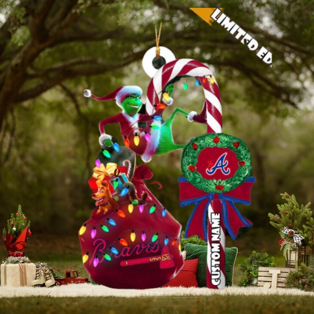 Atlanta Braves MLB Grinch Candy Cane Personalized Xmas Gifts Christmas Tree Decorations Ornament
