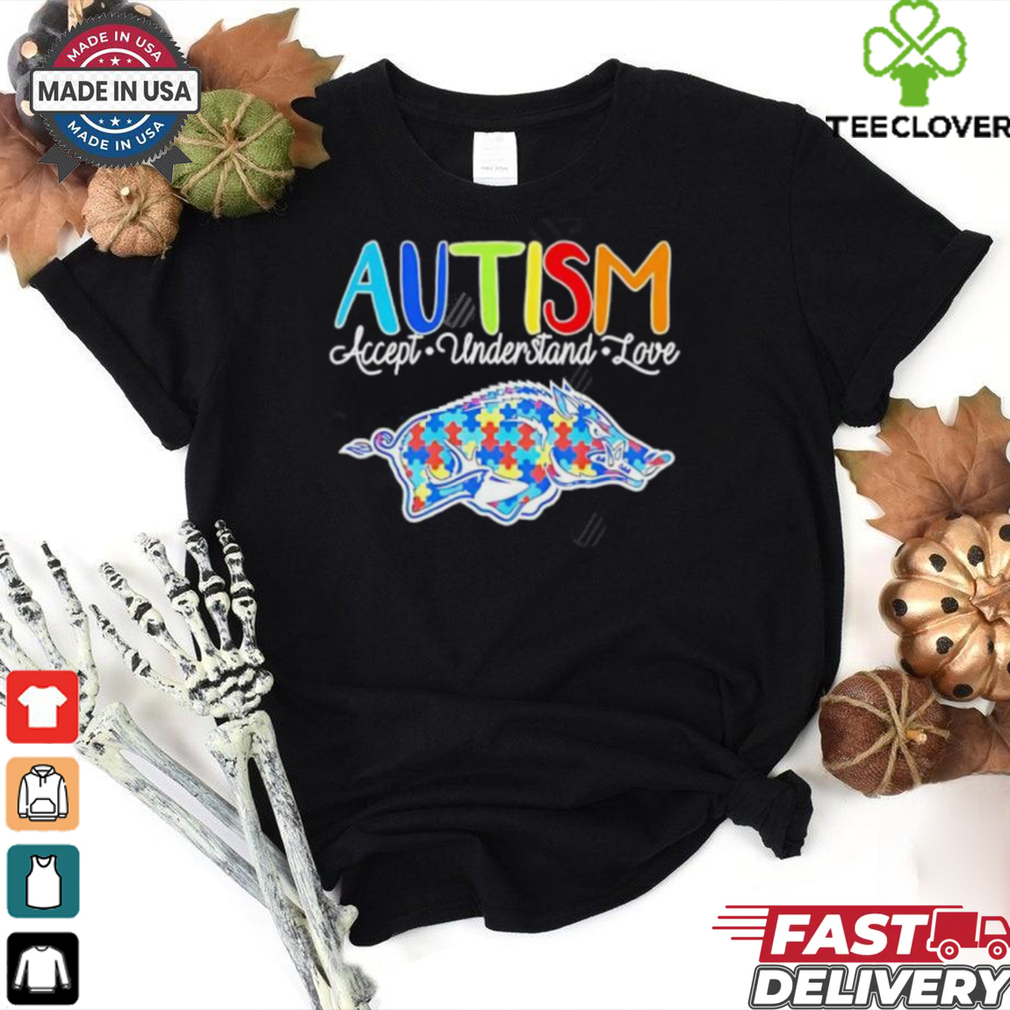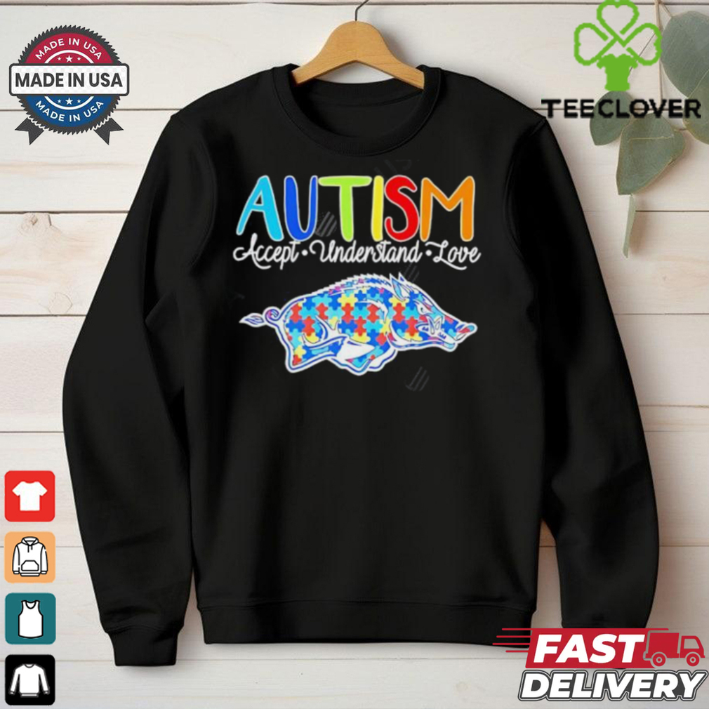 ()Autism accept understand love Arkansas Razorbacks shirt hoodie, tank top, sweater and long sleeve t-shirt: best style for you