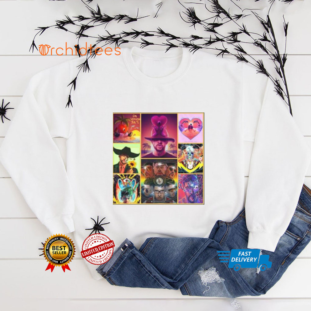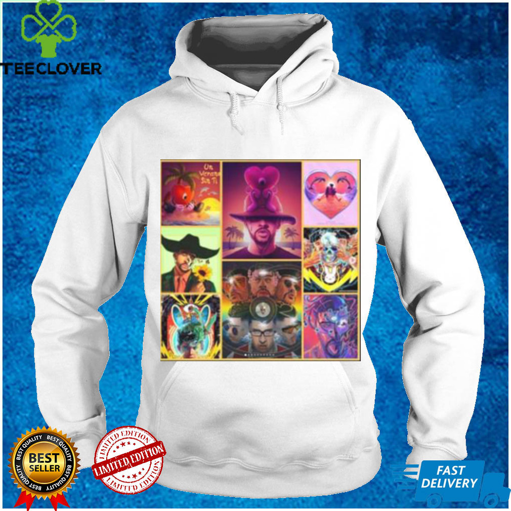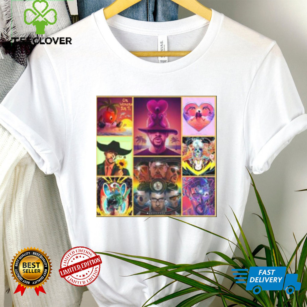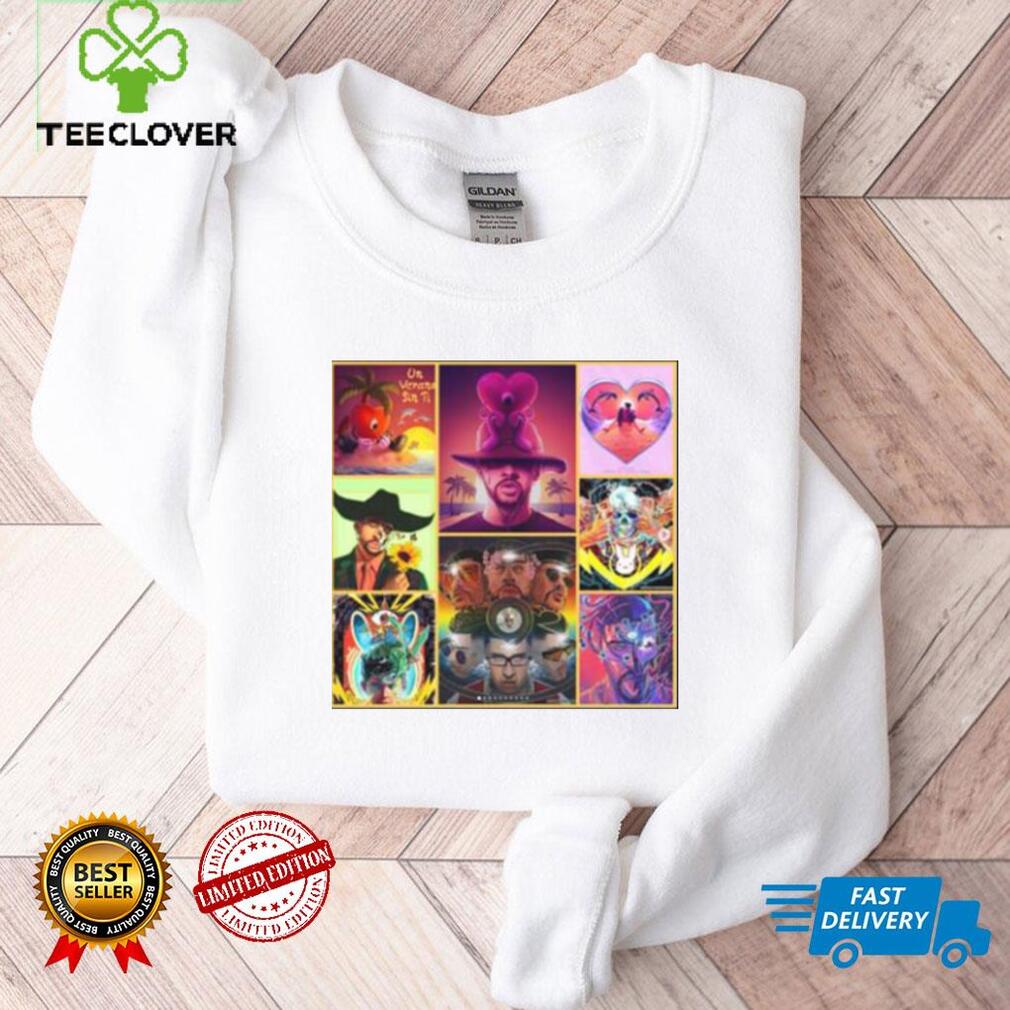 Since it’s sold more than 3,400,000 if she is the writer then I would think that the total sales claimed by her record company, it has the majority of the Bad Bunny Un Verano Sin Ti Style Art T Shirt from it and may bgive her a percent of it. Maybe in the about 500 thousand dollars range of the total sales claimed. I think the percent to go to the singer is a relatively small amount of the total.she cowrote the song in 1994 and it has generated over $60,000,000 worldwide sales. It has sold about million each year. This is the number eleven best selling song of all time and the best ever selling Christmas song except for white Christmas. I have seen the answer to this In the links from Wikipedia’s site. It has sold over 6 million this year. More than before when the charting rule for recurrent songs had it ineligible for the hot hundred.