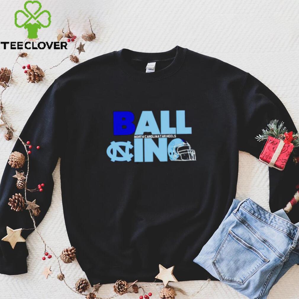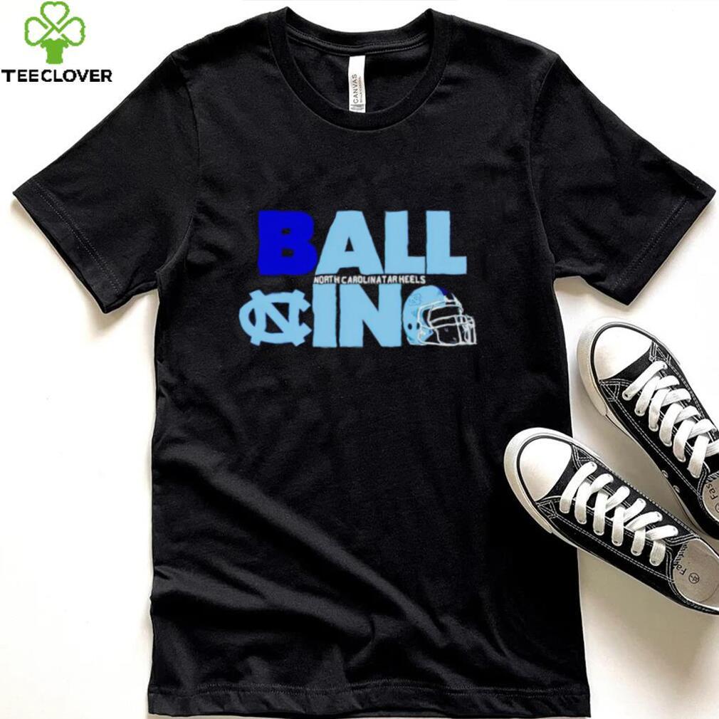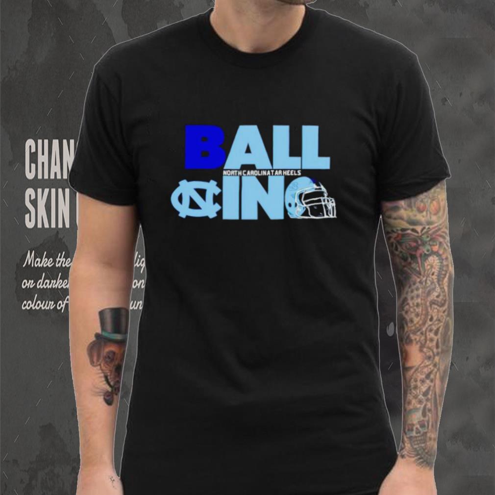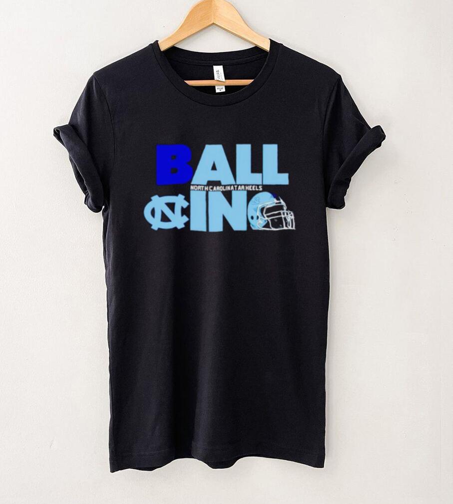 ()Ball in North Carolina Tar Heels logo helmet shirt