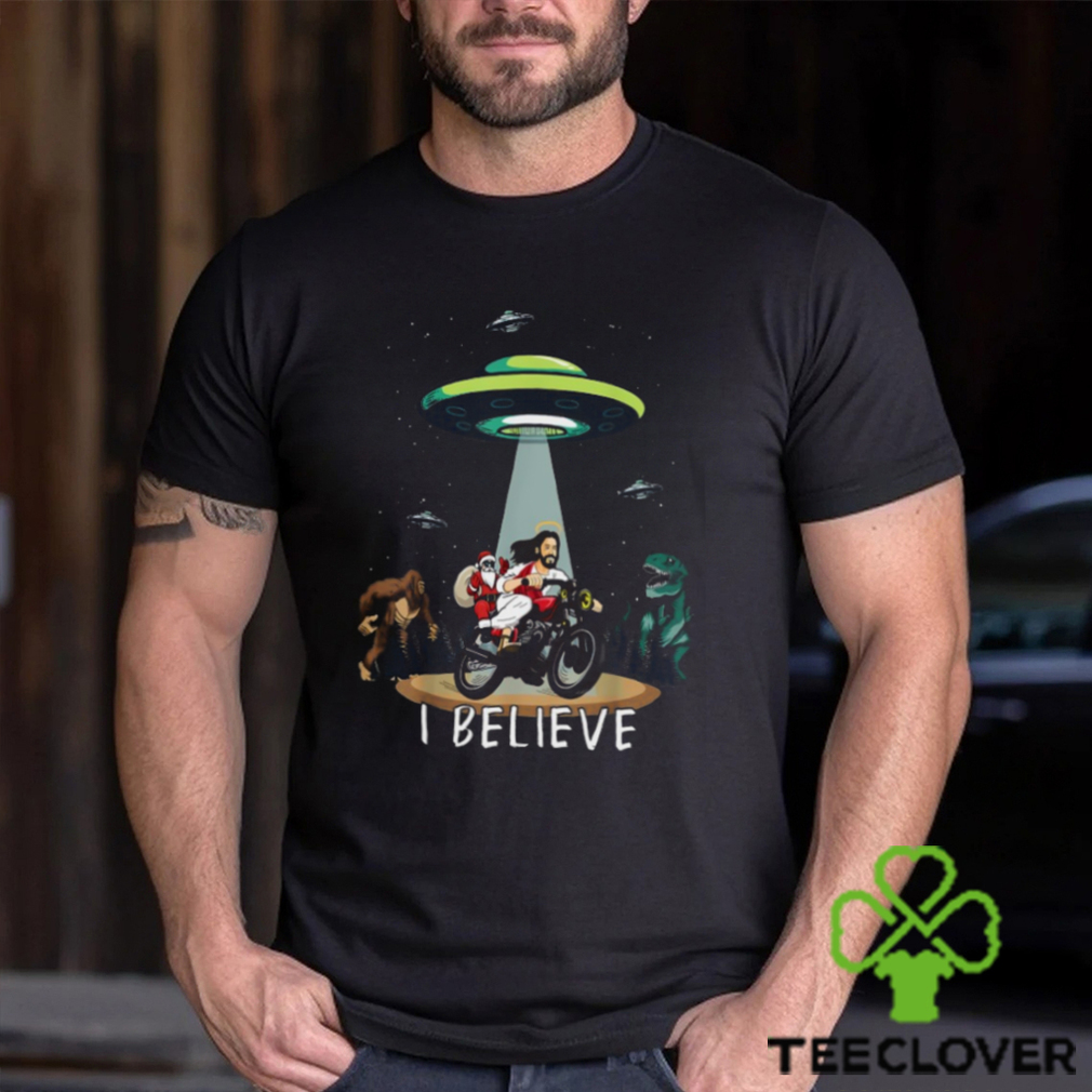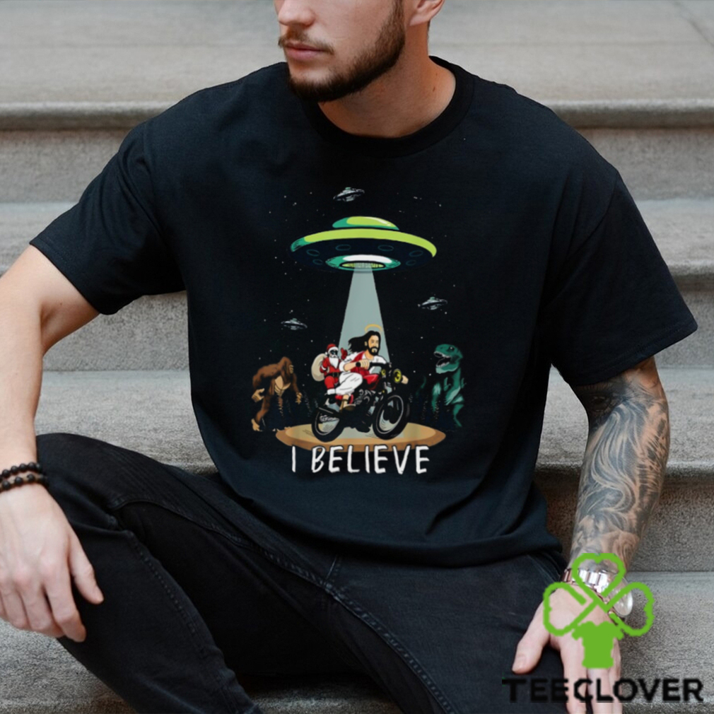()Believe Dinosaur Santa Jesus Bike Christmas Classic T Shirt hoodie, tank top, sweater and long sleeve t-shirt