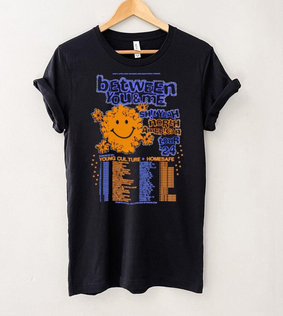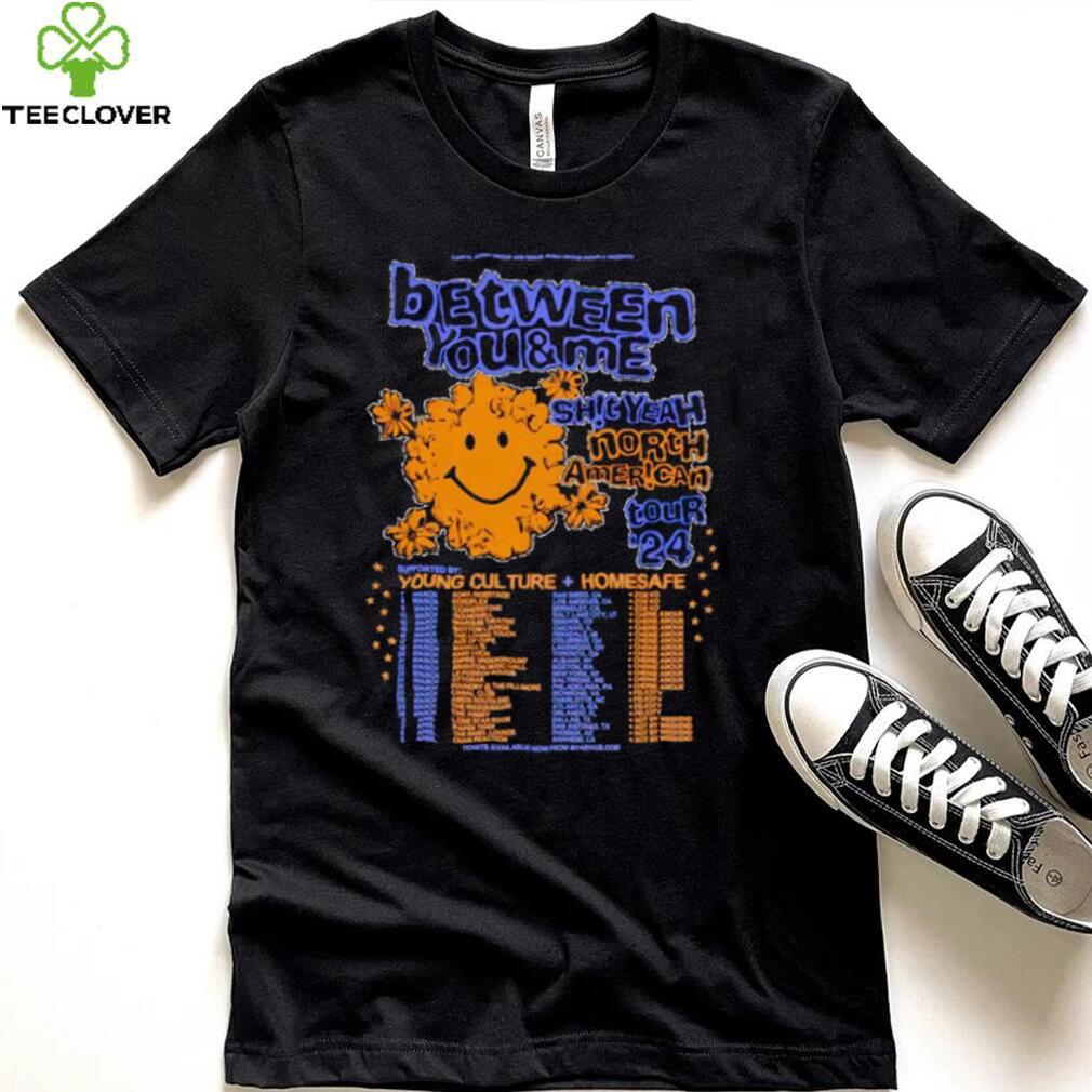 One of the books of the bible tells the story of the Between you and me shit yeah North American tour 2024 shirt .. And how they began. The missing book is the book of Enoch. And it tells the story of how magic started. Basically there were angels who looked down on man and wanted to be with the females and they left heaven to come down, and they mated with the women and started families but they also taught man the sacred magics, the magic of metals, making iron, brass, copper and gold and silver. They taught them the medicine magics and how to heal themselves with herbs and even how to abort a baby. They taught them the mystical secrets.. Of heaven presumably. Of numbers and letters. This tribe of people was called the magi. Because they were like magicians to the other peoples. And possessed knowledges unknown to them. God became so outraged when he found them out , that he is said to have killed all the off spring of the angels who were a giant people. And produced giant children much larger than the other people – and he punished the Angels.