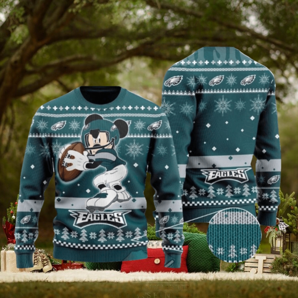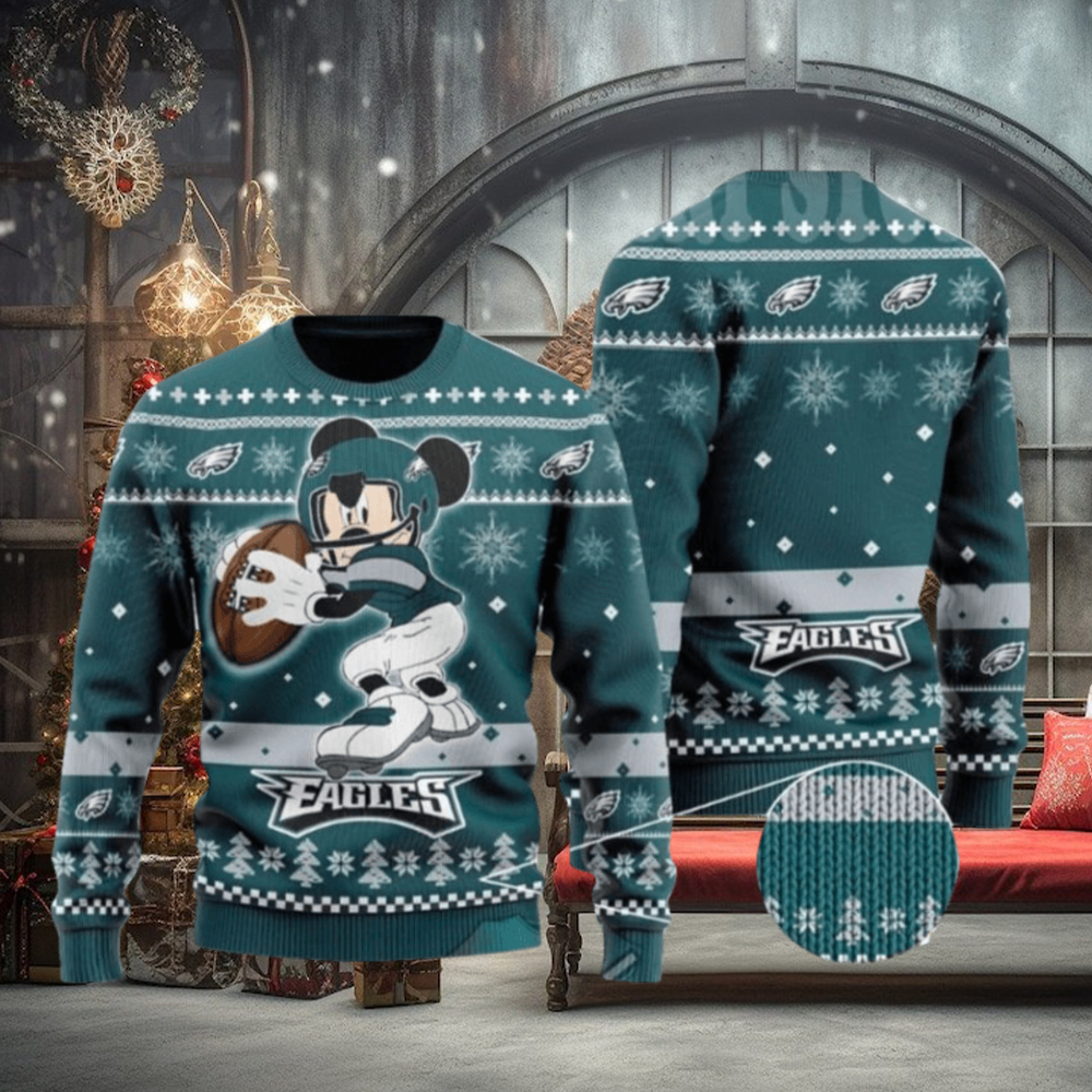 ()Big Mickey Mouse Playing Philadelphia Eagles Ugly Christmas Sweaters,