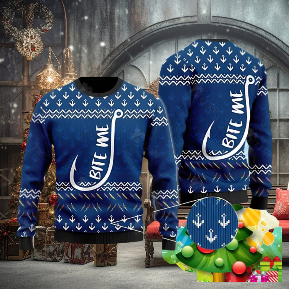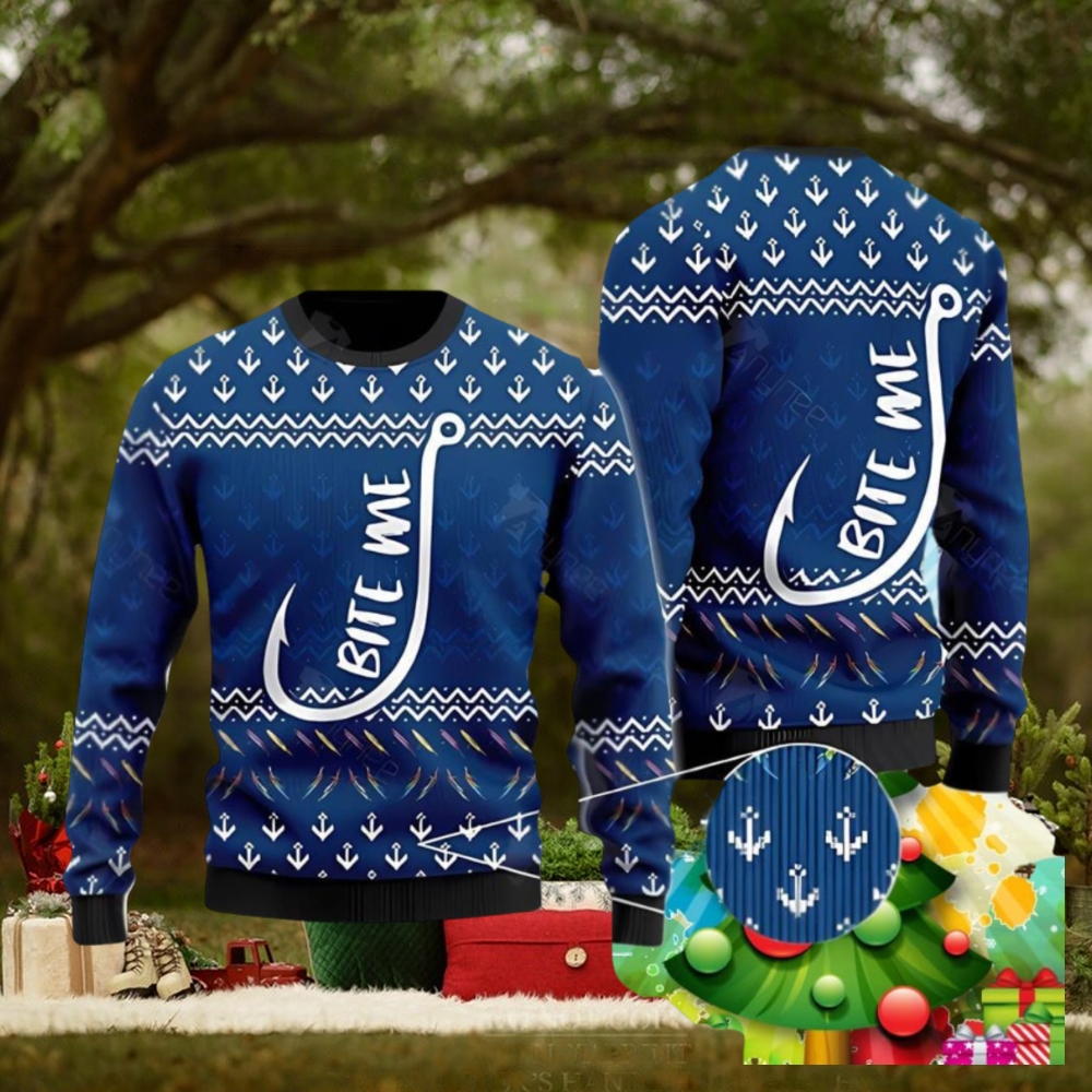 Best Bite Me Blue Ugly Christmas Sweater Best Gift For Men And Women Unique Gift For Men Women