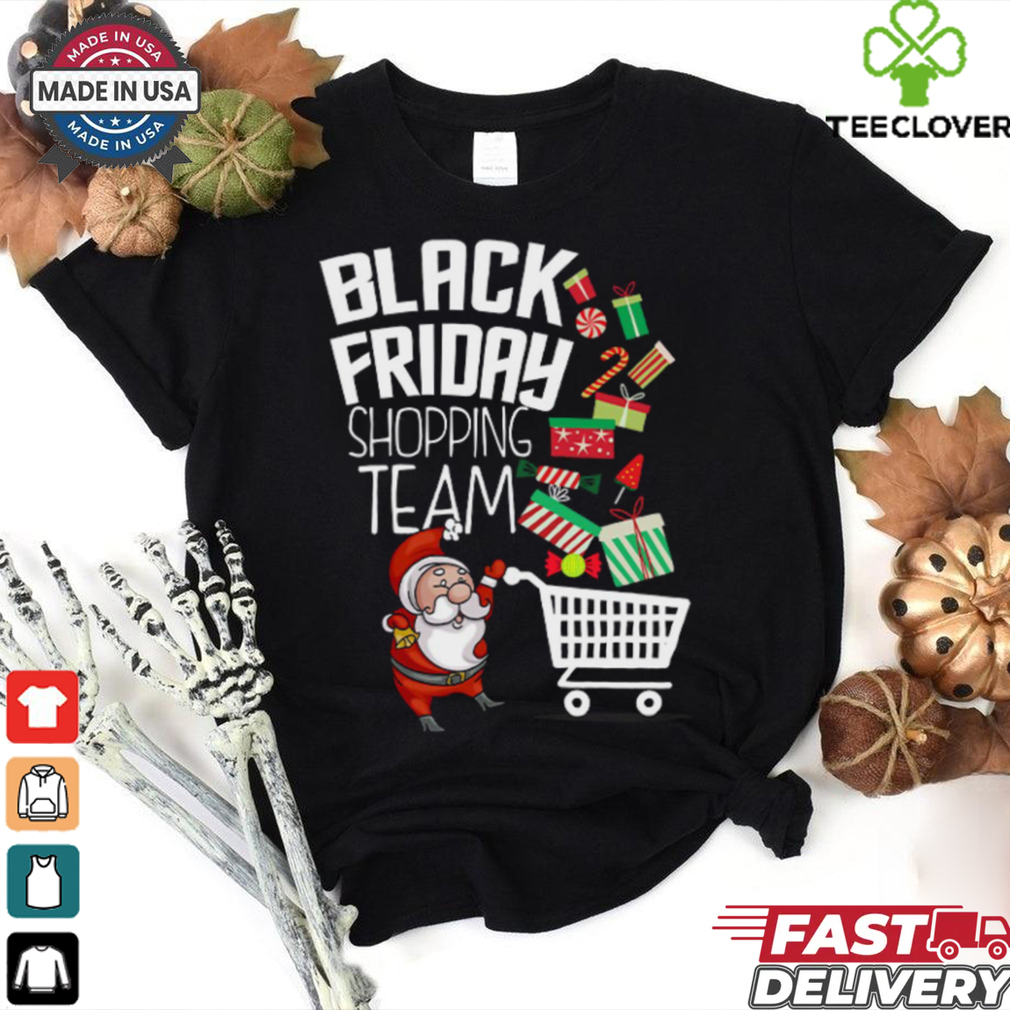 Their smooth, seamless cups look Black Friday Shopping Team Funny Christmas T Shirt under tight-fitting clothing making them the perfect choice for fitted sweaters and bodycon dresses. Unlike unlined bras, t-shirt bras and contour bras create a symmetrical, rounded breast shape.Women with asymmetrical boobs sometimes opt for push-up t-shirt bras with removable padding so they can customize the fit for a more symmetrical look. To get the best fit, choose a t-shirt bra with a snug band and cups that completely contain your breast tissue.