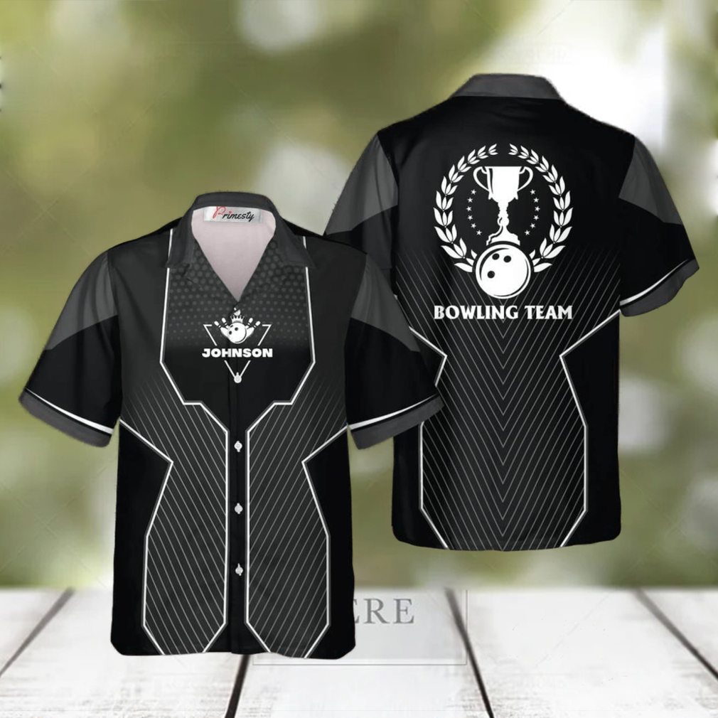 Black Sports Style Trophy Emblem Personalized Bowling Tropical Hawaiian Shirt,