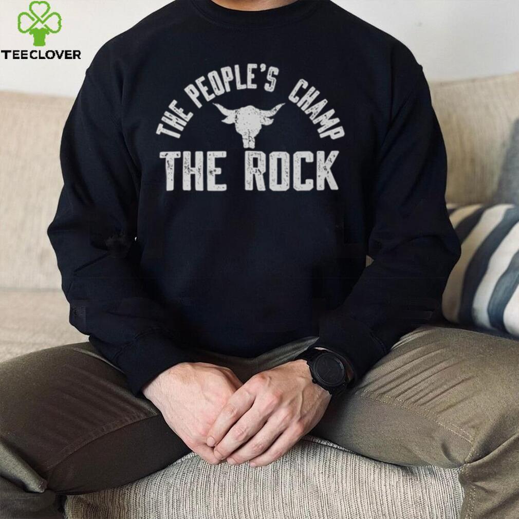 In terms of skills it depends what position they are moving from and to, but I think a season of training with a pro side and some regional amateur rugby games in the lower leagues followed by 1-2 seasons playing below the top flight would be required, if they had the right attributes to reach the top flight. It could be 2 years in total for a winger, or 4 for a more involved position with higher technical and tactical requirements. A player with exceptional physical attributes like being able to run a sub-11 second 100m at 275lbs and a lethal side-step or being fit at 300lbs and immensely strong and Black The Rock The People’s Champ T Shirt explosive might make it earlier as their attacking threat with the ball in hand would do more to cancel out their shortcomings than a more physcially average player.