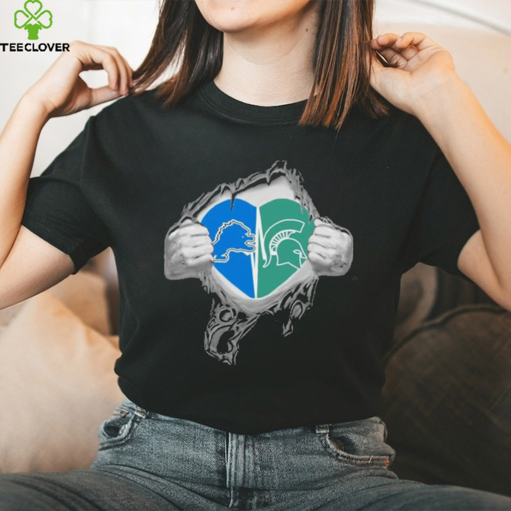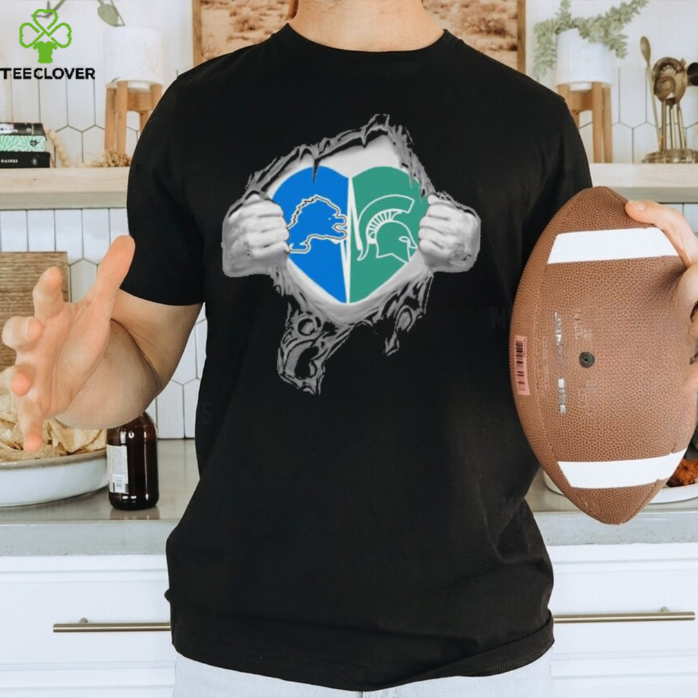 ()Blood Inside Me Detroit Lions And Michigan Spartans It’s In My Heart T Shirt, Hoodie, Sweater, Vneck, Unisex and T-shirt