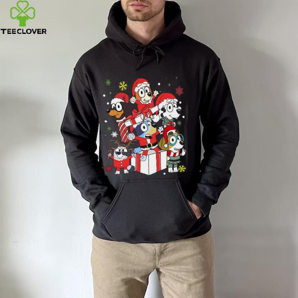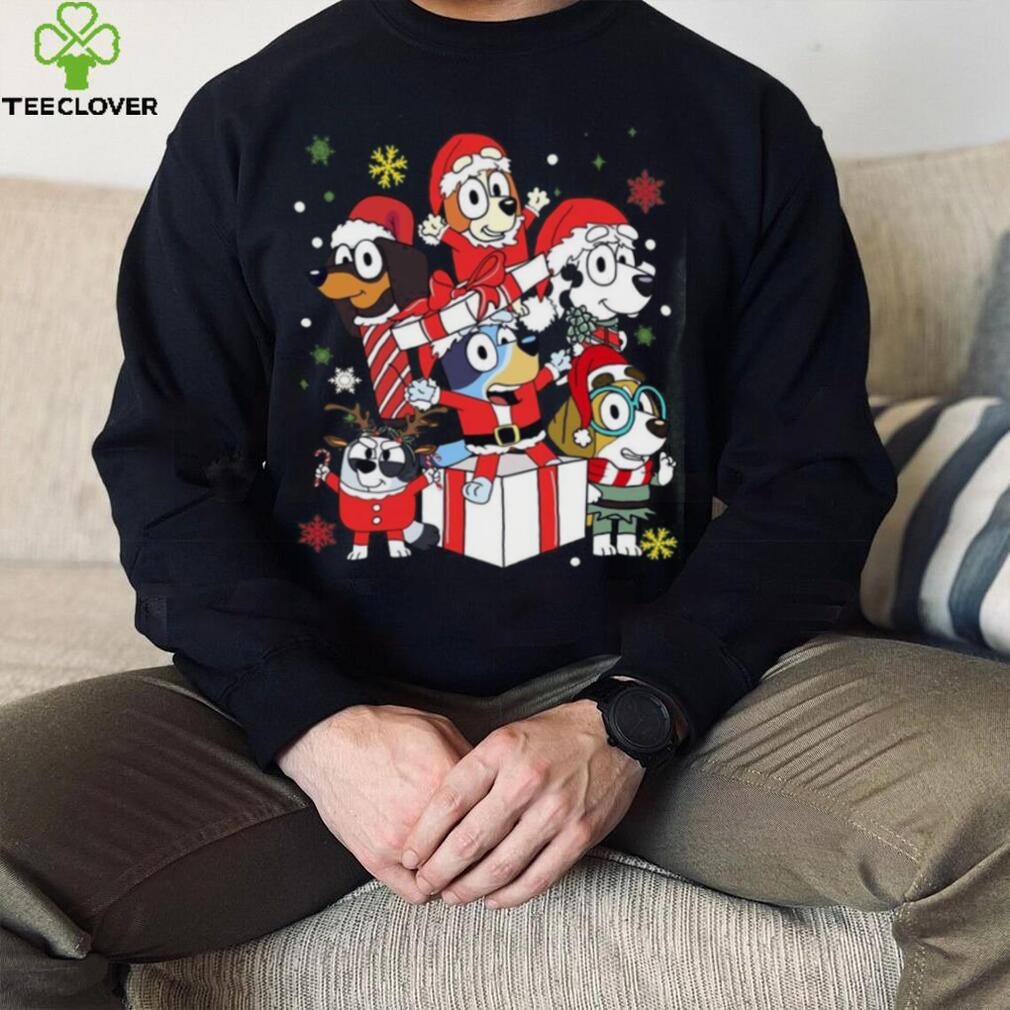 The Bluey Family Christmas Shirt Blue Dog Christmas Shirt to answering your question is experience. We exist to experience; we know we exist because we experience our own existence. The second key is observation. We observe our existence, our experience. We witness, record, and reflect upon our experience. The third key is intention. From observations of our experiences, we build a theory of “reality”, and make choices to act or not act based on that theory. We form an intention to create a specific experience that we want to observe. Now we have a sufficient solution to the problem. Experience, observation, and intention together create reality. They cannot exist without each other. None is more fundamental than the other, and none can be removed without destroying the others. Experience, observation, and intention: the grand experiment. We exist to try things, experience them, and observe the result. There is no meaning beyond that; when we are gone, all those things are gone too. We should use the little time we have to make as many experiments as possible. We have been blessed with the opportunity to experience, observe, and intend, and we should not waste it.