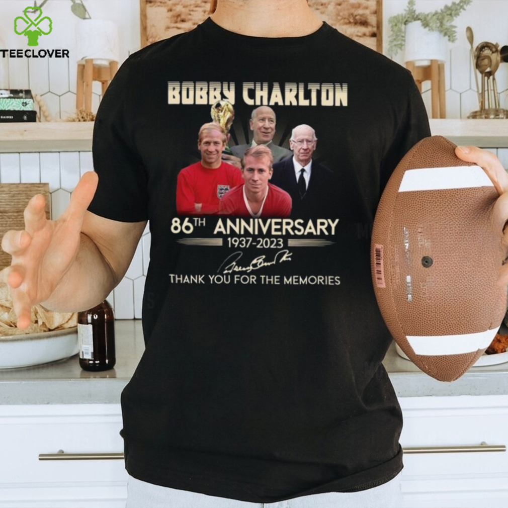 ()Bobby Charlton 86th anniversary 1937 2023 thank you for the memories shirt, Hoodie, Sweater, Vneck, Unisex and T-shirt
