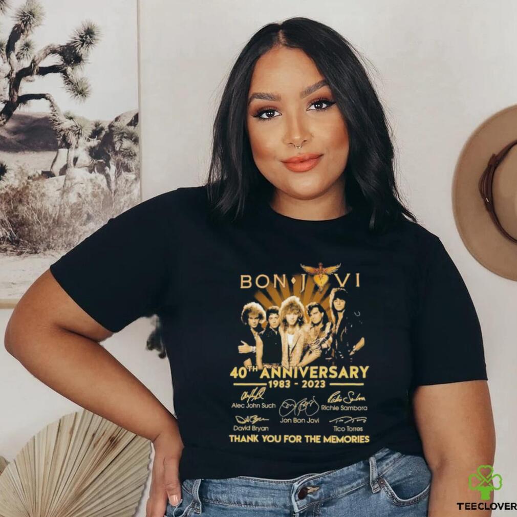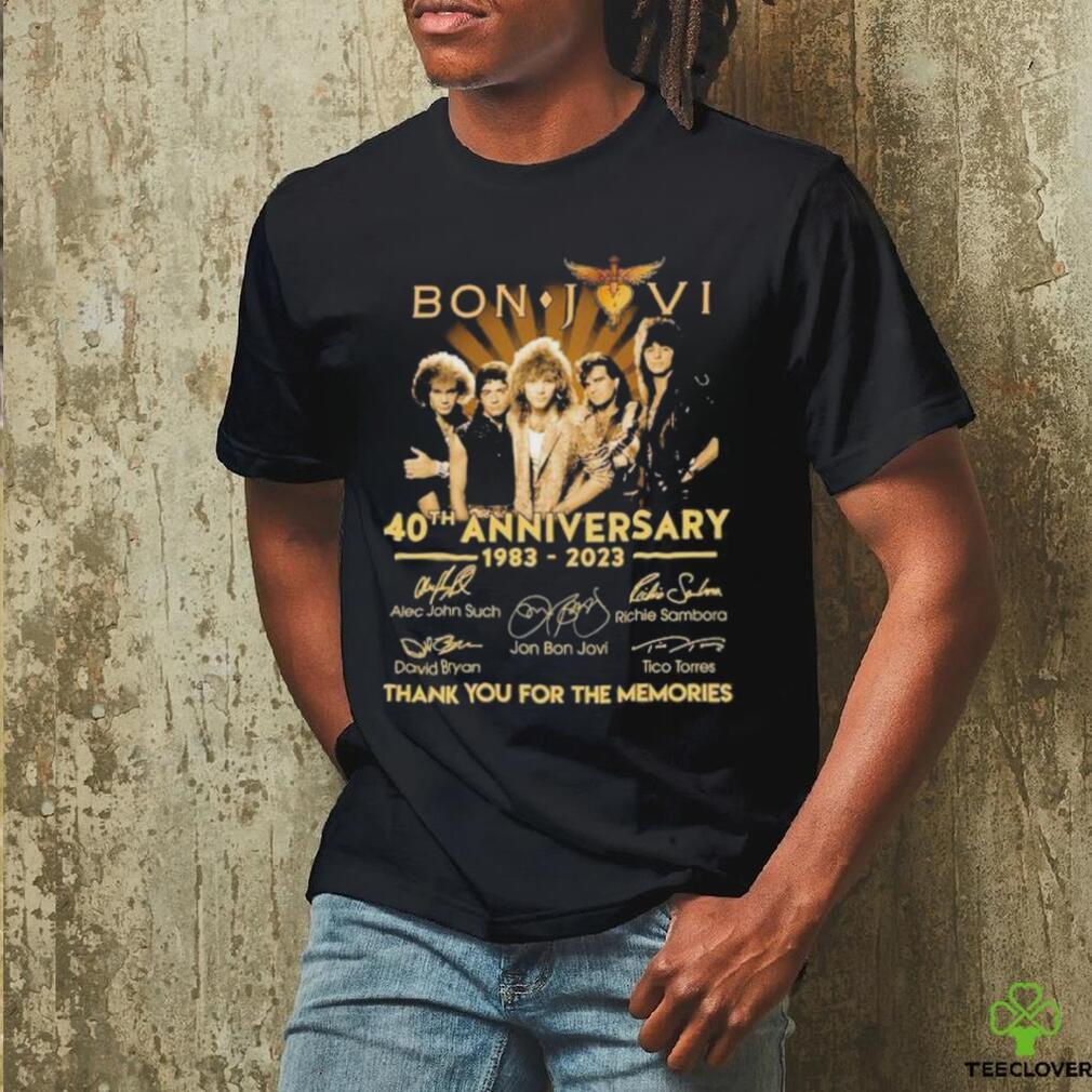 Best Bon Jovi 40th anniversary 1983 2023 signatures thank you for the memories shirt