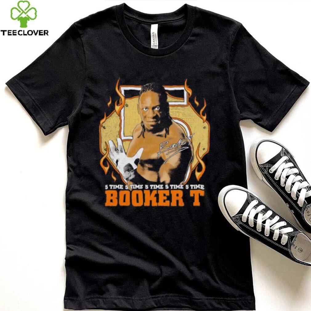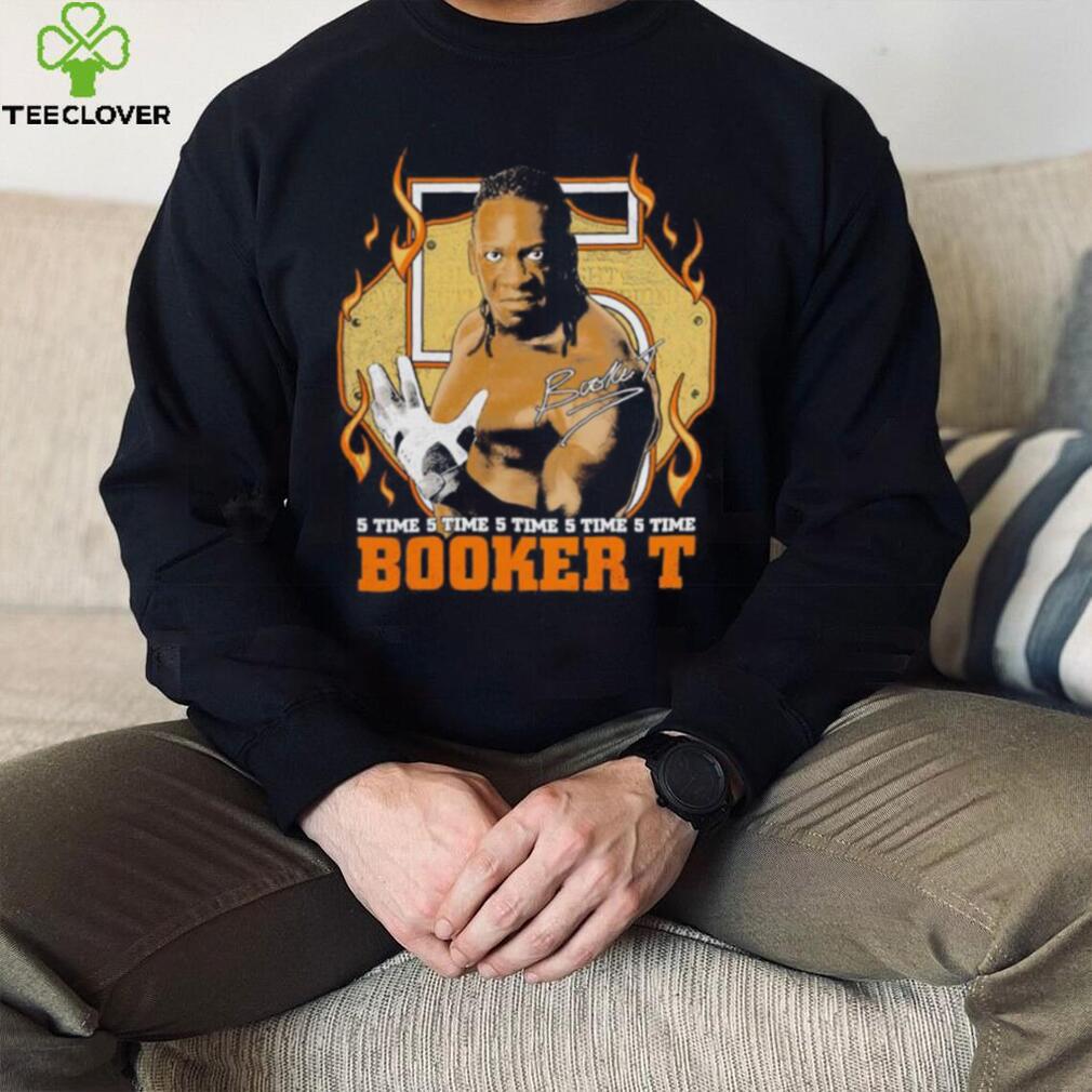I’m just saying, you scuttle your defense purposely, because it’s the same mistakes over and over. You constantly overpay for offensive talent, and that’s not how you build a Booker T 5 Time signature T Shirt. Is it my opinion? No it’s Belichick’s opinion. Go study Belichicks’ teams, there ain’t no first round pick wide receiver, in fact he’s never drafted one. There ain’t no $10MM a year running back. Falcon fans want to believe their starting quarterback who can’t drop back five steps is amazing, ask yourself this: why is there so much offensive talent around him? It doesn’t cross your mind if he’s that good it’d be better to have more talent on defense? No, because you’re not very knowledgeable are you. And thusly, you keep having mediocre seasons. Last year the team was 3rd in the division. This season, flat out horrible, finished 7–9 and probably should have fired the head coach for losing out on a high pick. A brutish untalented defense because once again the offense is loaded. I’m telling you, next season this team is skydiving at 5–11.
