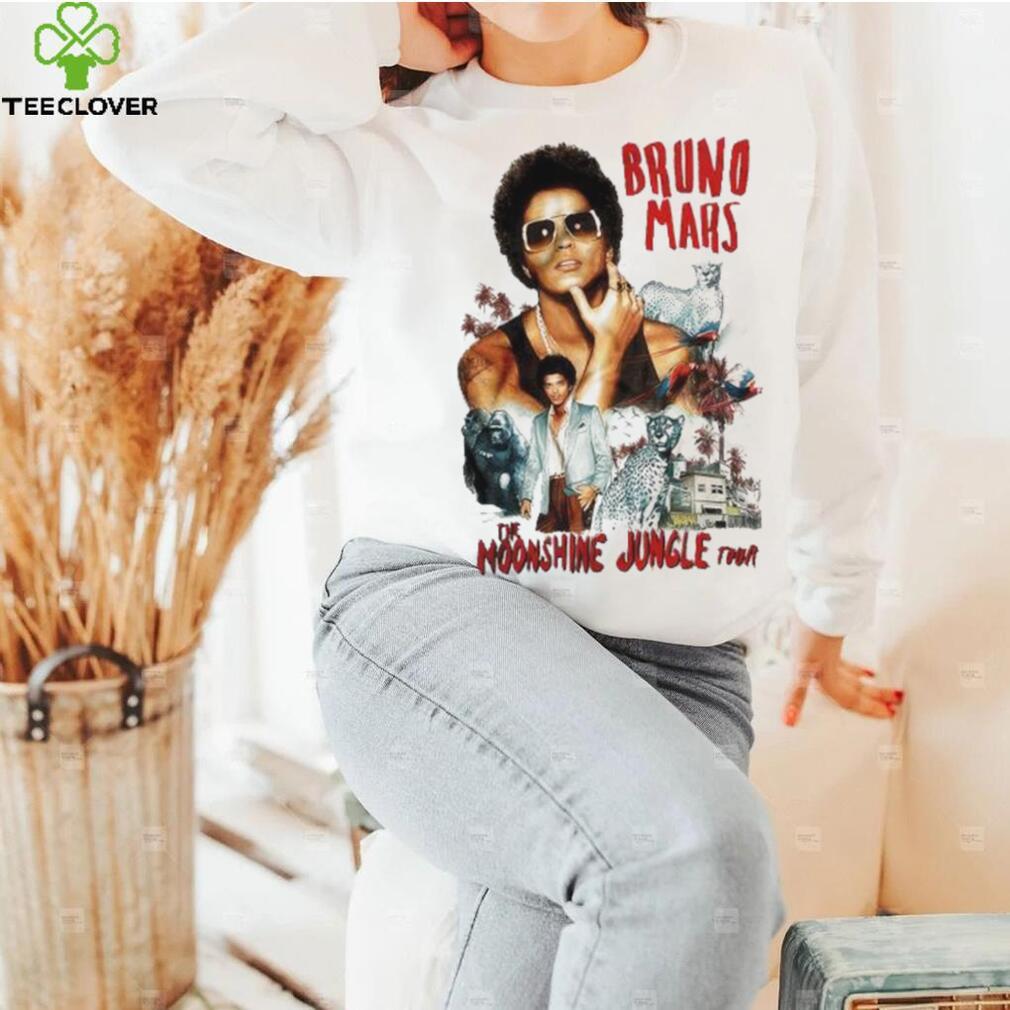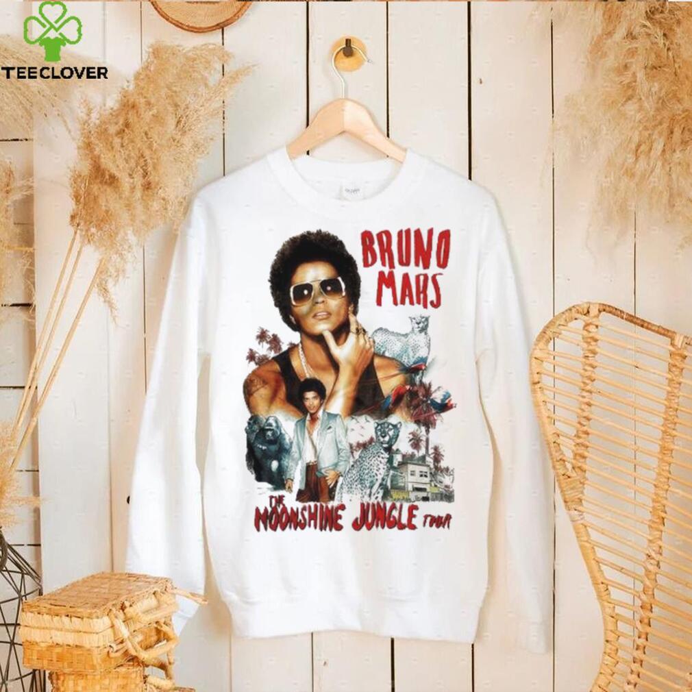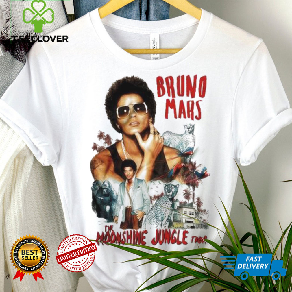 At the other outpost also all was finished. During this night we reached the Bruno Mars the moonshine jungle tour shirt of the Tannu Ola and descended again into a valley covered with dense bushes and twined with a whole network of small rivers and streams. It was the headwaters of the Buret Hei. About one o’clock we stopped and began to feed our horses, as the grass just there was very good. Here we thought ourselves in safety. We saw many calming indications. On the mountains were seen the grazing herds of reindeers and yaks and approaching Soyots confirmed our supposition. Here behind the Tannu Ola the Soyots had not seen the Red soldiers. We presented to these Soyots a brick of tea and saw them depart happy and sure that we were “Tzagan,” a “good people.