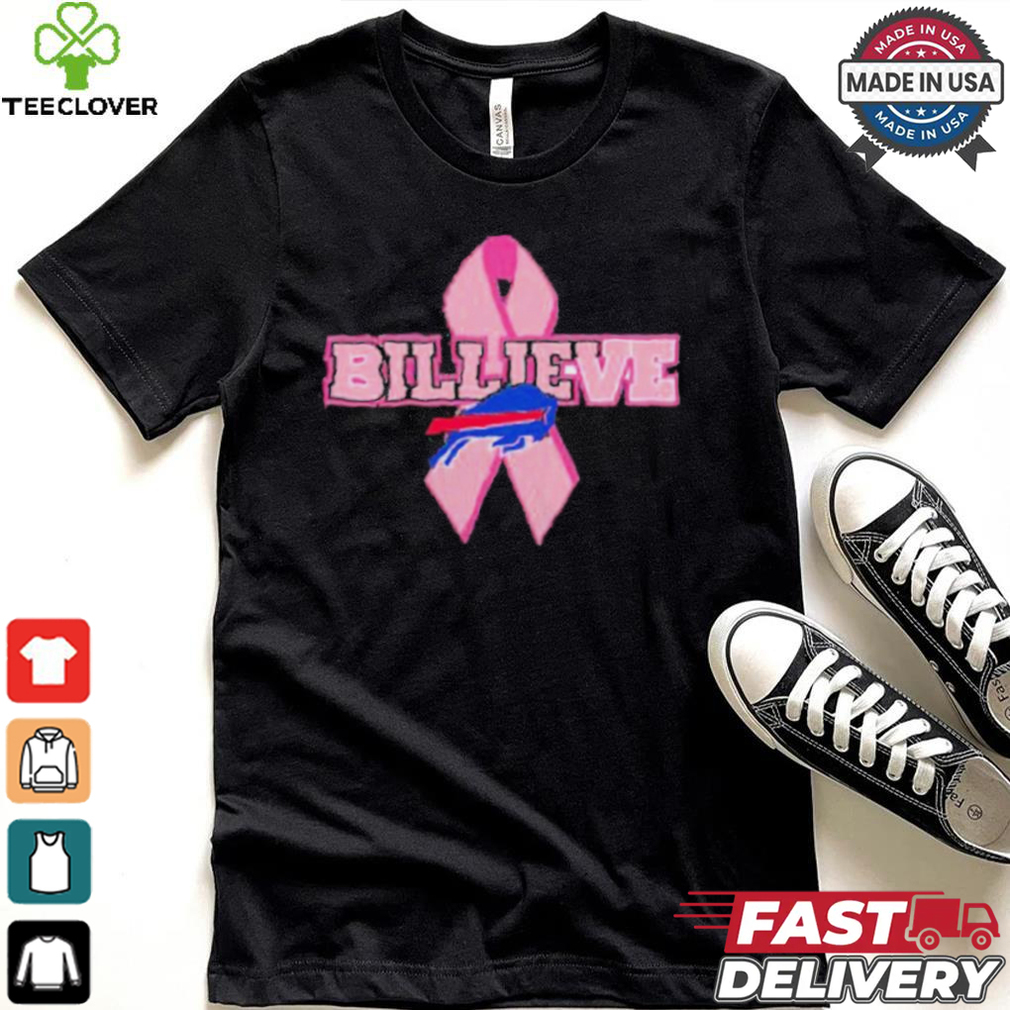 When I was quite small, my family were Jehovah’s Witnesses. My big brothers remembered their Catholic beginnings, they remembered magical Christmases. My little brother and I did not, we’d never been Catholic yet. We used to get very sad that all of our friends had lovely Christmas or Hanukkah, and we did not. We’d pout. My big brothers tried their best to console us. Our best friends lived across the Buffalo Bills Breast Cancer Awareness 2024 T Shirt . Their dad was not home much, but he was a very stern man. He had quite the temper (when we grew up, we realized that he was always drunk, but when we were small he was just scary). He had a Doberman called Rex who we were all also terrified of. One year, I’m probably four or five, we’re sitting in my brothers’ room wistfully staring out the window at our friends playing with their new toys, wearing their Christmas sweaters, all that. The oldest two brothers, maybe trying to console us, convince us that we do not want Christmas at all. They tell us that Scary Dad is Santa Claus. They tell us that Rex the Doberman is actually Rudolph. Would we really want Rex landing on our roof? Would we really want Scary Dad judging whether we were naughty or nice, and sneaking into our house while we slept?