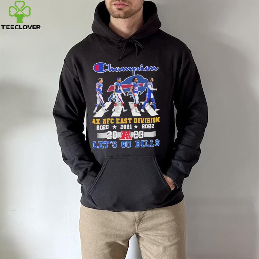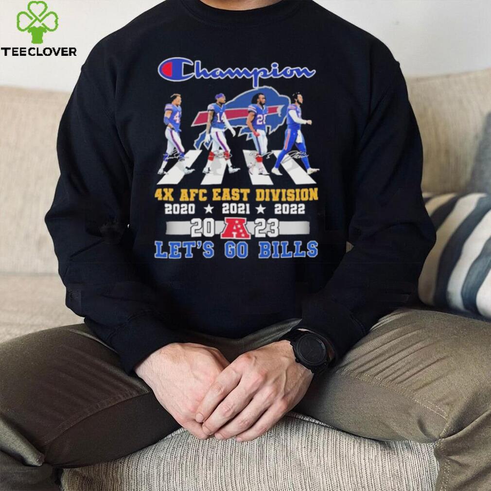 My funny story is when Santa put himself on the naughty list. I travelled the Buffalo Bills Member Street Champion 4x AFC east division 2023 let’s go bills shirt home from work a few years ago, and I enjoyed all the Christmas lights and decorations every night. One house had a huge blow up Santa on top of the garage, with his arm raised, waving at you when the wind blew. One day I left work early, and it was still daylight. As I turned the corner on this windy day, I saw Santa was a bit deflated. He was slightly bent over and his arm had fallen down so that his hand was between his legs, and the wind was blowing a bit, and he was gently bobbing up and down, up and down, and he seemed to be enjoying himself entirely too much! I was crying with laughter, and I can never look at Santa again without flashbacks.