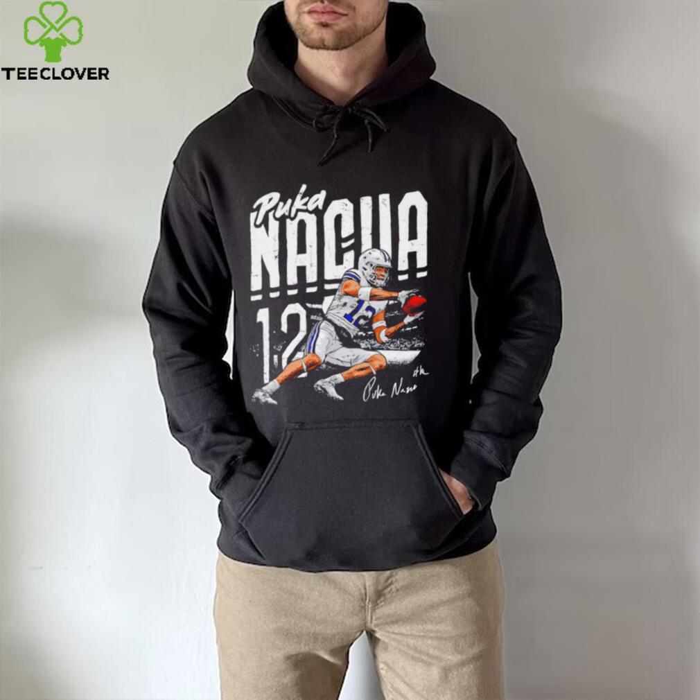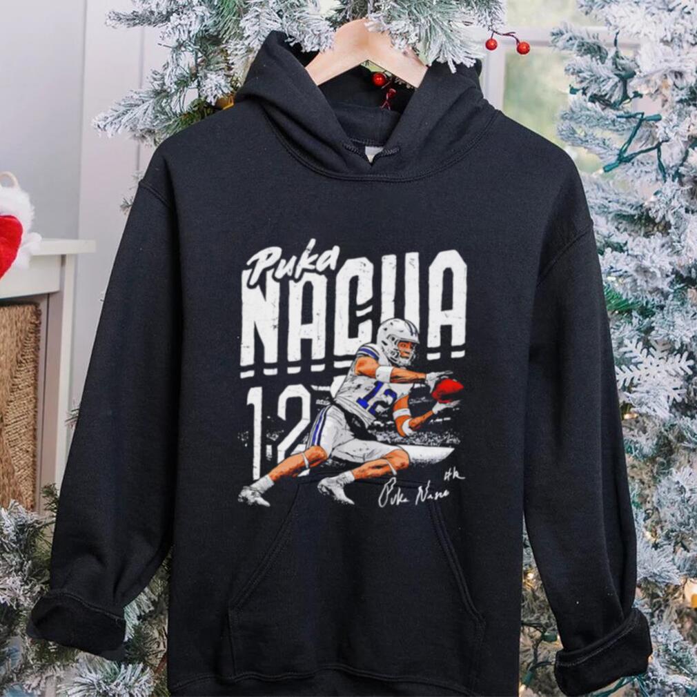 The BYU football Puka Nacua number 12 player action pose signature draw shirt to when Beethoven first realizes his deafness and he explains that Theresa would not love him were she to know. He is then shown Theresa’s reaction to his unexplained absence and he realizes that his deafness is the cause of all his problems. Fate explains that if she cures his deafness his music will suffer, as the Muses would not be heard as easily through the everyday sound. He thus withdraws his request. Beethoven is then shown that Theresa would have loved him forever and he becomes very sorrowful. But Fate then offers visions of the countless musicians of the future who would be influenced by Beethoven’s works. As one last, ultimate vision he is allowed to improvise with the musicians of the past and future who were inspired by him. Realizing that removing the hardships from his life would destroy his music, Beethoven informs Fate that he will not change any part of his life.