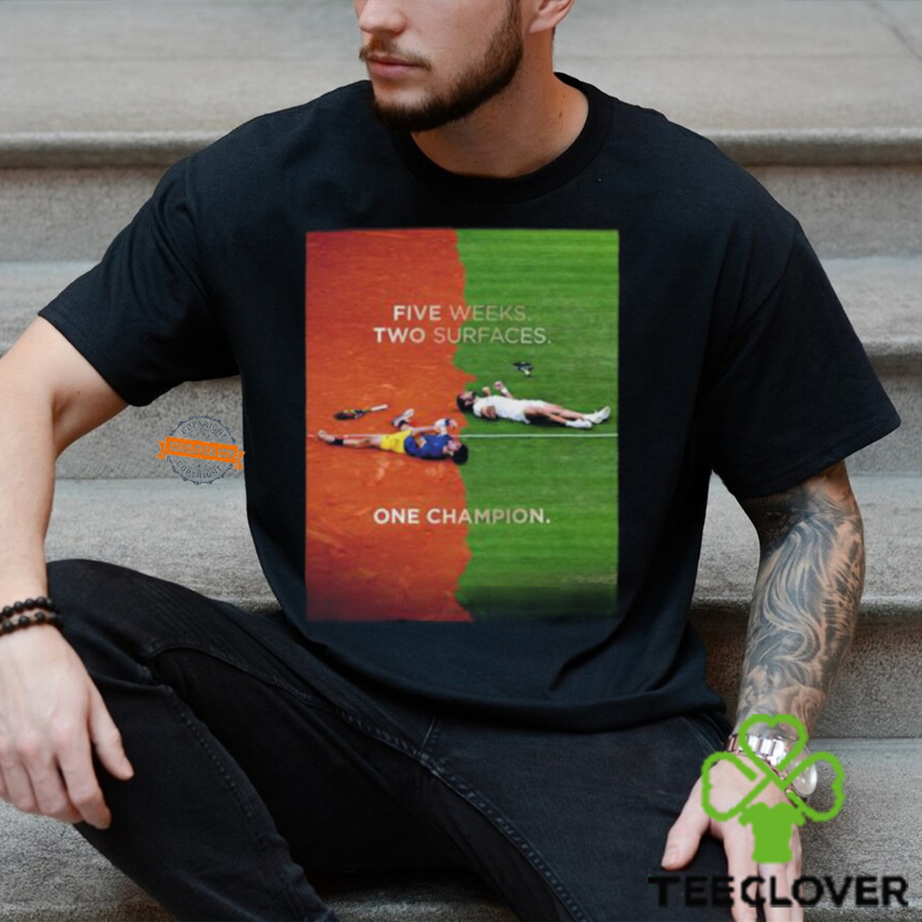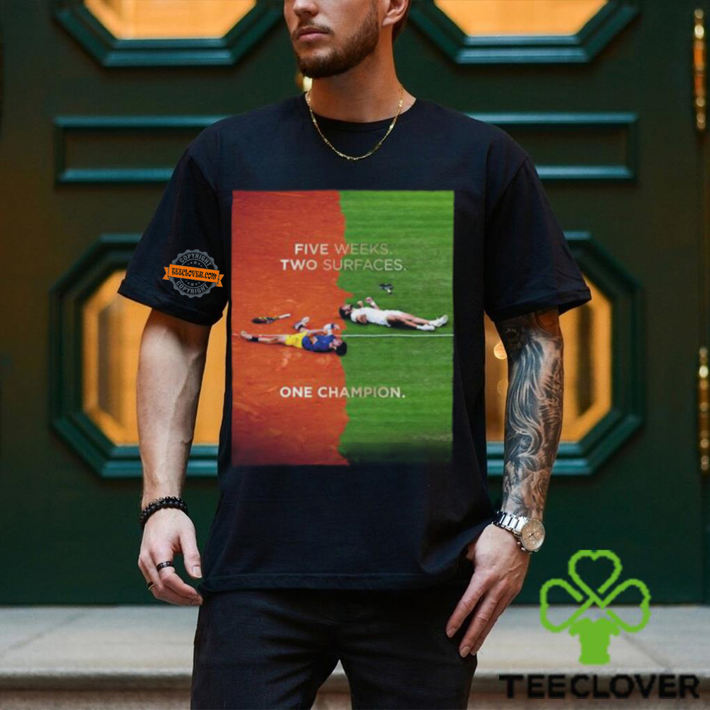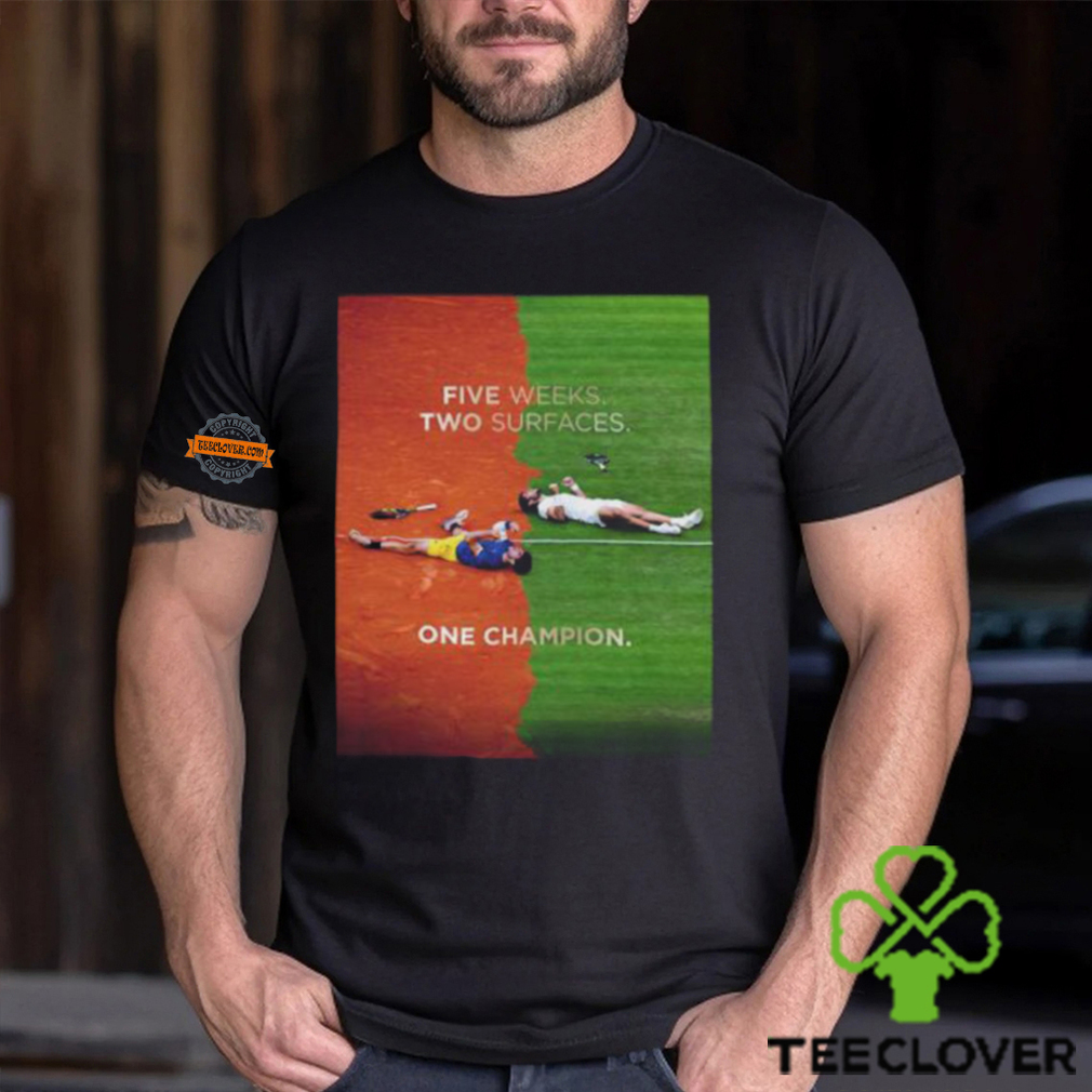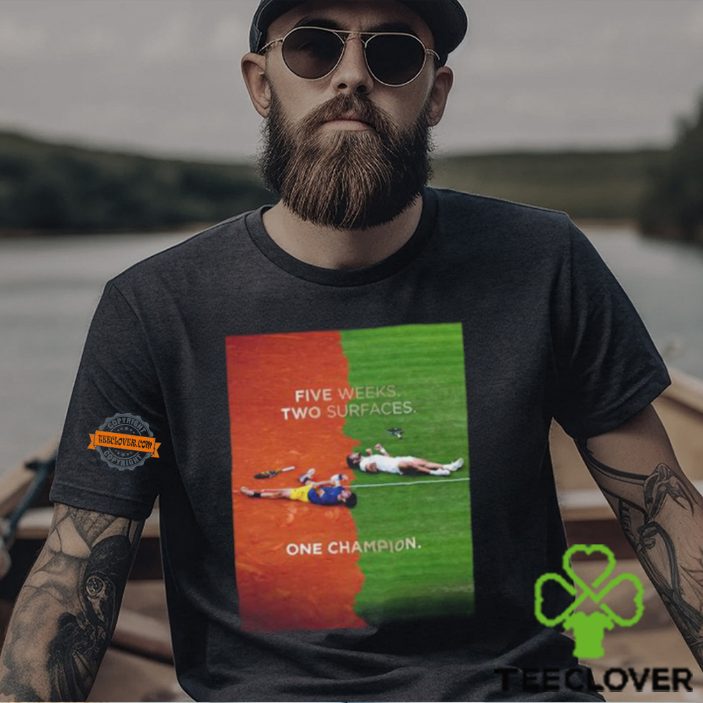()Carlos Alcaraz Five Weeks Two Surfaces One Champion 2024 Classic T Shirt hoodie, tank top, sweater and long sleeve t-shirt