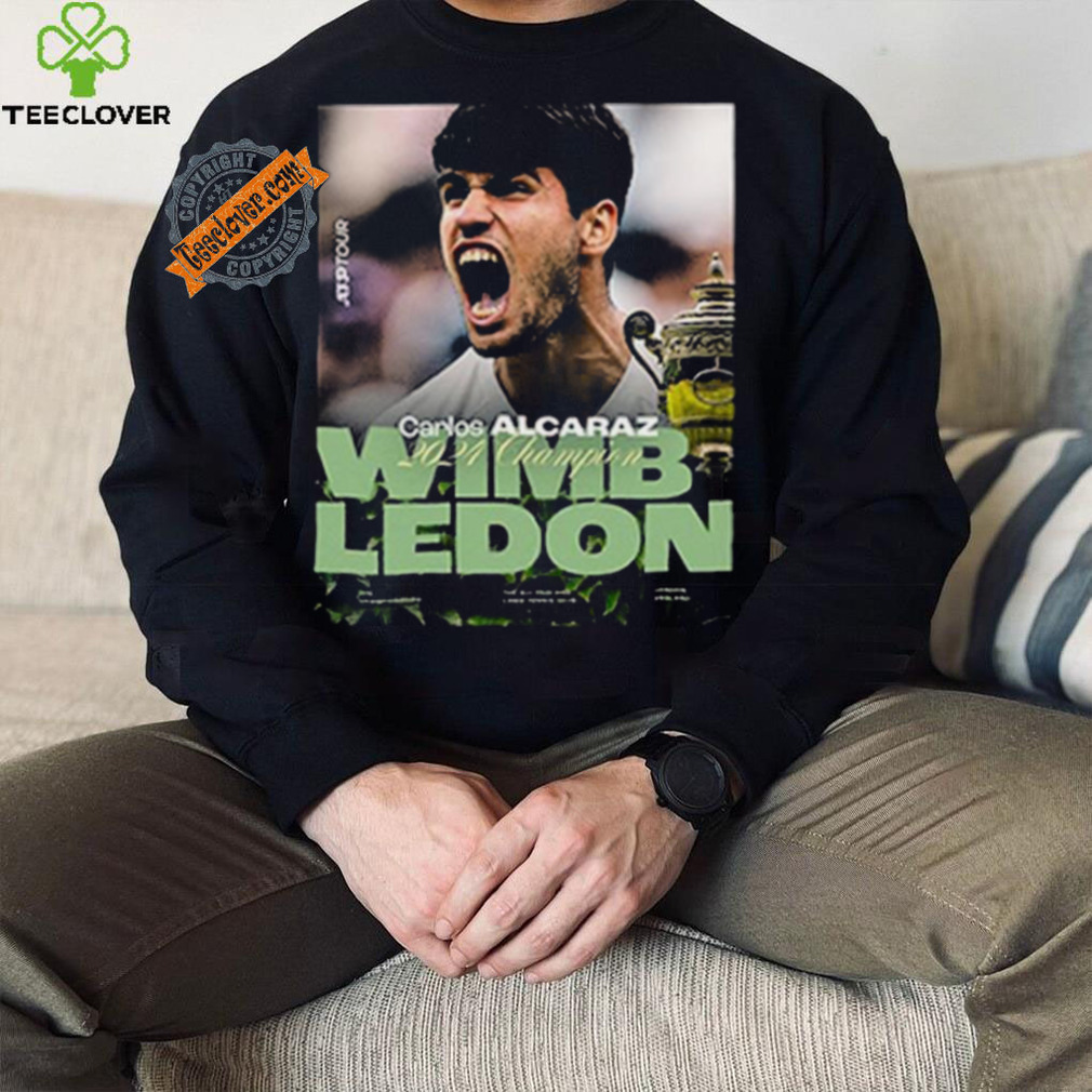 (The Bolshevik) sentinel slowly raised his head. But just at this moment the Carlos Alcaraz Is The 2024 Gentlemen Singles Champion Wimbledon ATP Tour London England shirt body of my friend rose up and blanketed the fire from me and in a twinkling the feet of the sentinel flashed through the air, as my companion had seized him by the throat and swung him clear into the bushes, where both figures disappeared. In a second he re-appeared, flourished the rifle of the Partisan over his head and I heard the dull blow which was followed by an absolute calm. He came back toward me and, confusedly smiling, said: “It is done. God and the Devil! When I was a boy, my mother wanted to make a priest out of me. When I grew up, I became a trained agronome in order. . . to strangle the people and smash their skulls? Revolution is a very stupid thing!” And with anger and disgust he spit and began to smoke his pipe.