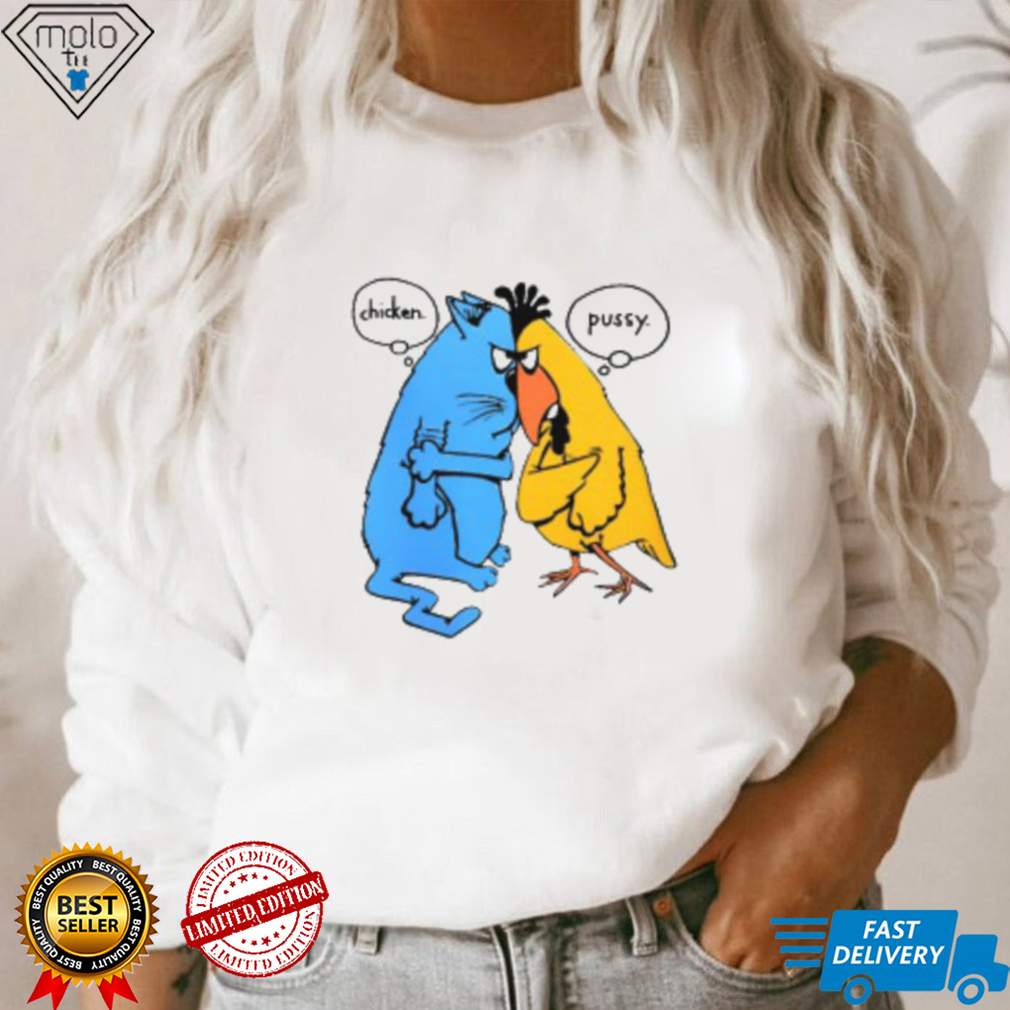 Angry at having his time wasted, he throws accusations of Cartoon Chicken Pussy Single Stitch T Shirt at Flaherty and disbelief at Corwin’s claim that the bag is supernatural. Dundee challenges Corwin to produce a bottle of cherry brandy, vintage 1903. Corwin reaches into the bag to hand Dundee his exact request, and is set free. He continues to distribute gifts until midnight, when the bag is empty. A man named Burt, whose desired pipe and smoking jacket had come from Corwin’s bag, sees Corwin again and points out that Corwin himself has not received a gift. Corwin says that if he had his choice of any gift at all, “I think I’d wish I could do this every year”. Returning to the alley where the gift-laden bag had presented itself, he encounters an elf sitting in a large reindeer-hauled sleigh, waiting for him. Realising that his wish has come true and he is now the real Santa Claus, Corwin sits in the sleigh and sets off with the elf. Emerging from the precinct, Flaherty and Dundee, now slightly tipsy from Corwin’s brandy, look upward upon hearing the tinkle of bells and see Corwin, in Flaherty’s words, “big as life, in a sleigh with reindeer, sittin’ next to an elf”, ascending into the night sky. Dundee invites Flaherty to accompany him home and share some hot coffee, with brandy poured in it, adding, “…and we’ll thank God for miracles, Flaherty…