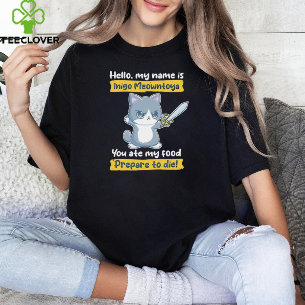Cat hello my name is Inigo Meowntoya you ate my food prepare to die shirt