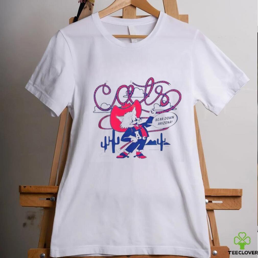 Christmas decorations are a Cats bear down Arizona shirt affectation. Whether one puts them up or doesn’t put them up, whether one leaves them up or takes them down, whether they are put up in January or any other time before December, has no impact on the superstition defined as luck. Good luck and bad luck are merely characterizations of serendipitous occurrences that are random in nature but which leave us either going hooray (good luck) or lamenting the vagaries of uncaring nature (bad luck). But worrying about or praying about or hoping for either as the case may be, like astrology for example, is simply superstitious dreck. As a native yo the city I must say there are three a places that I would suggest to visitors to really get the best holiday scene amd spirit. My first pick is going to be Westfield Mall’s extended outdoor shopping area Union Square. Located at the corner of Powell and Geary in the heart of downtown San Francisco the Christmas spirit is reminiscent of the movie “A Miracle on 24th Street”. That is minus the snow.