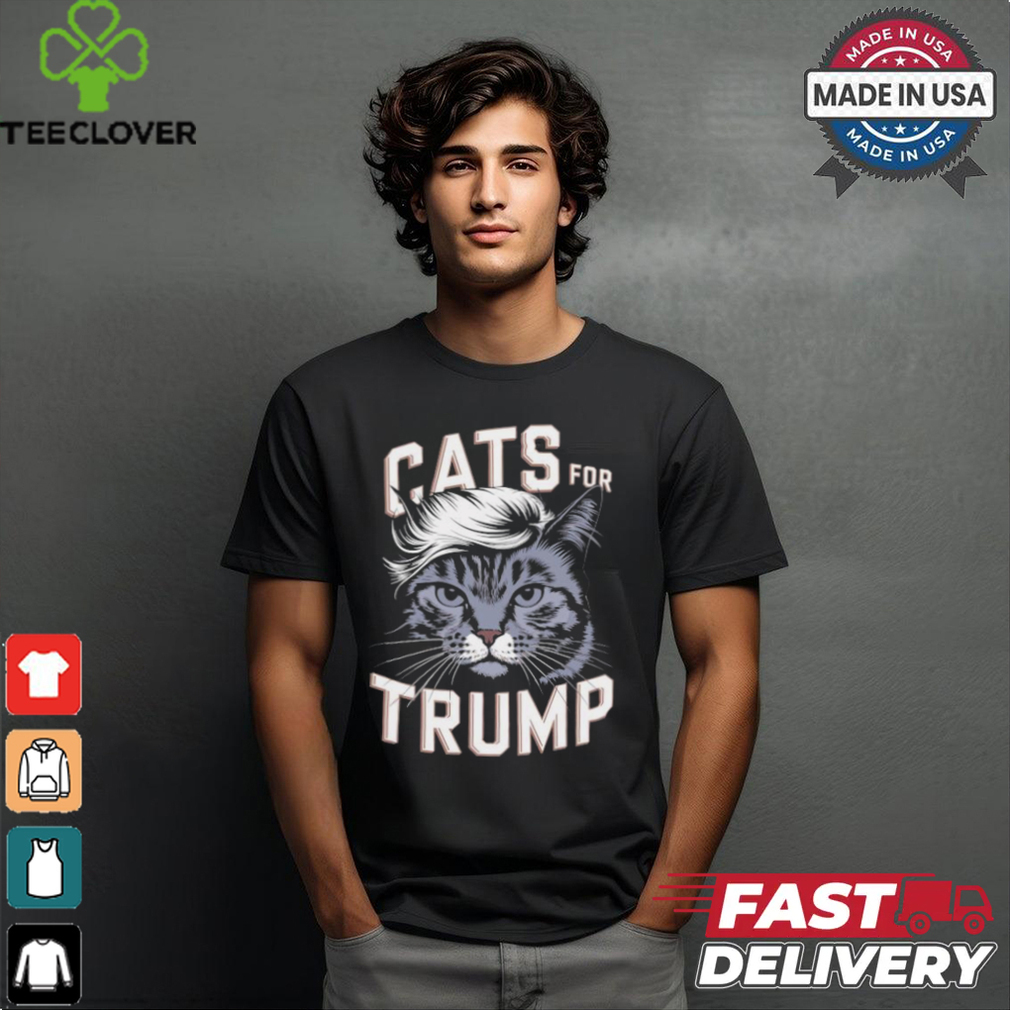 My little formerly “ Cats for Trump cat lover and Trump supporter T shirt ” kitty ( rescued as a 7 month old kitten ) was my most loyal, comforting, protective companion during a year and a half of B- cancer surgeries, intensive chemotherapy, and radiation treatments. Naturally tender in nature, she NEVER left my side on my bed, in my bedroom, the entire time. She even lost weight alarmingly as she refused to leave my bed just to jump down to have her kibble, water, and wet food… so that I chose to put them on a tray ON my Queen sized bed! She THEN began to eat & drink properly, still being close to me as I rested & went thru recovery.