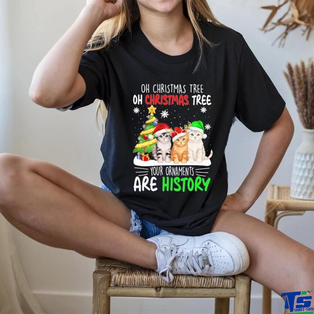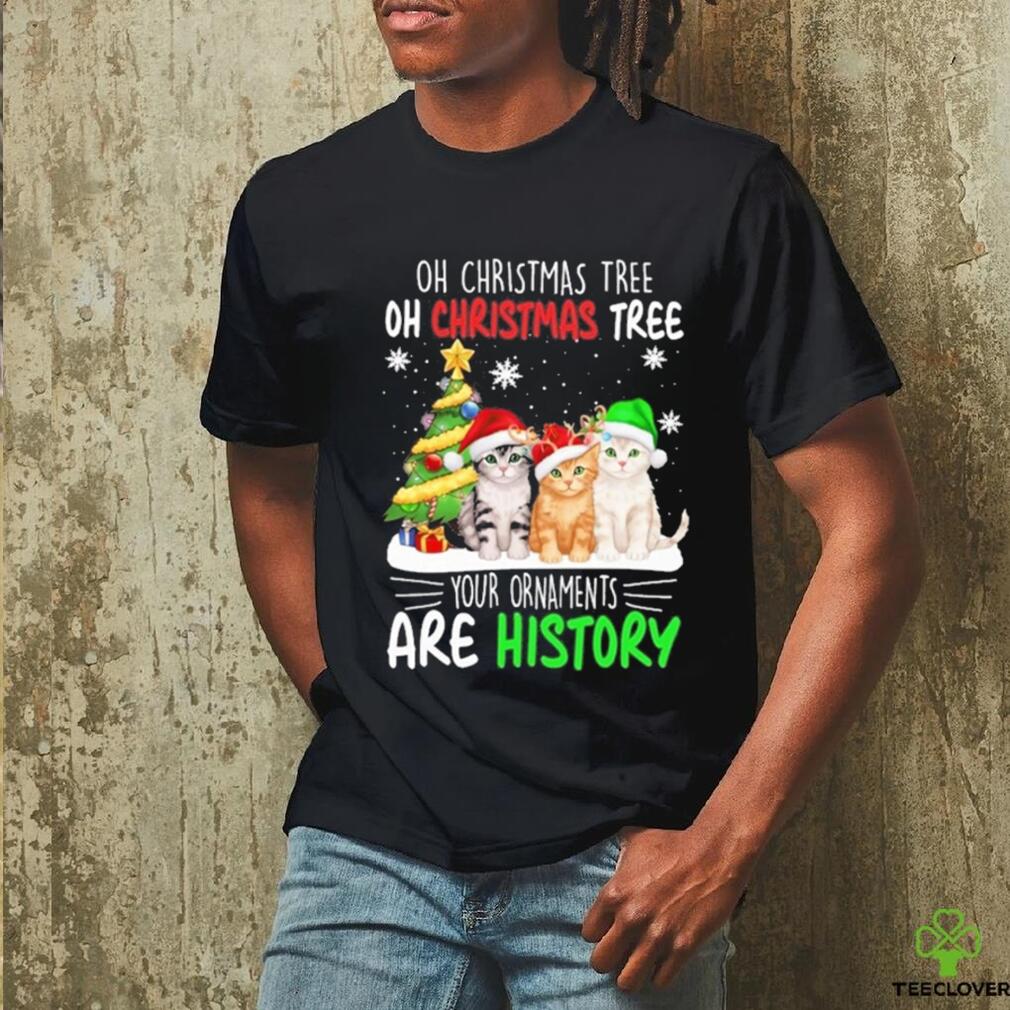 Cats hat santa oh christmas tree oh christmas tree your ornaments are history shirt