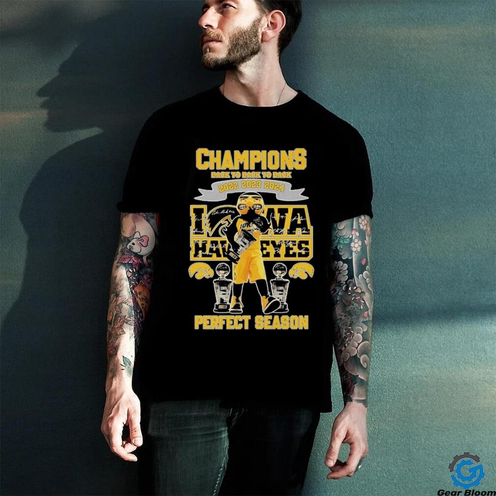 ()Champions Back To Back To Back 2022 2023 2024 Iowa Hawkeyes Perfect Season Shirt, Hoodie, Sweater, Vneck, Unisex and T-shirt