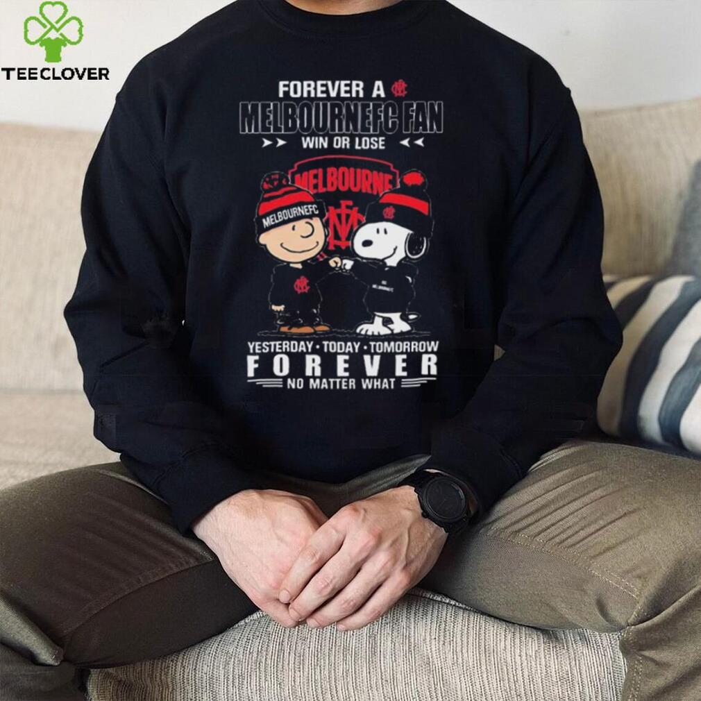 Charlie Brown and Snoopy Forever A Melbournefc Fan Win Or Lose Forever No Matter What shirt