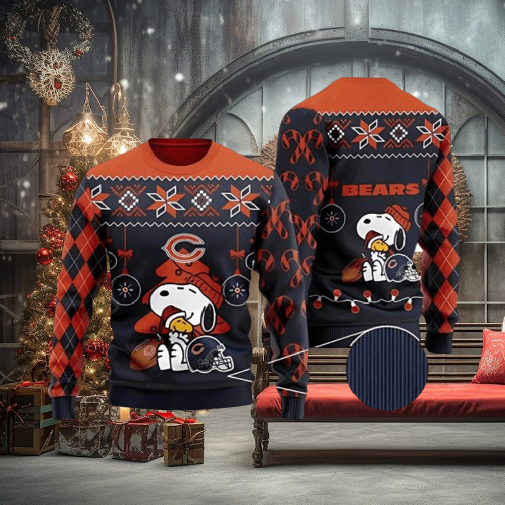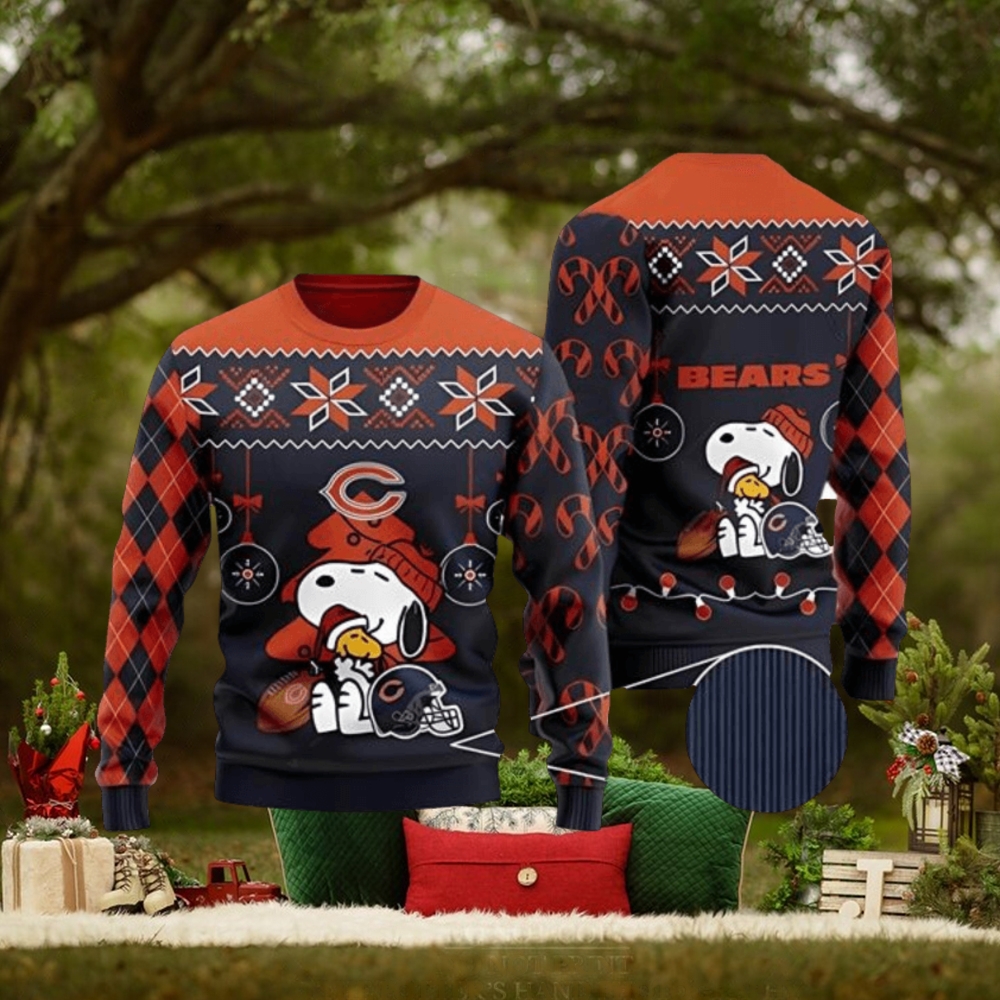 Best Chicago Bears Charlie Brown Snoopy Hug Woodstock Ugly Christmas Sweater 3D Printed Men And Women Holiday Gift