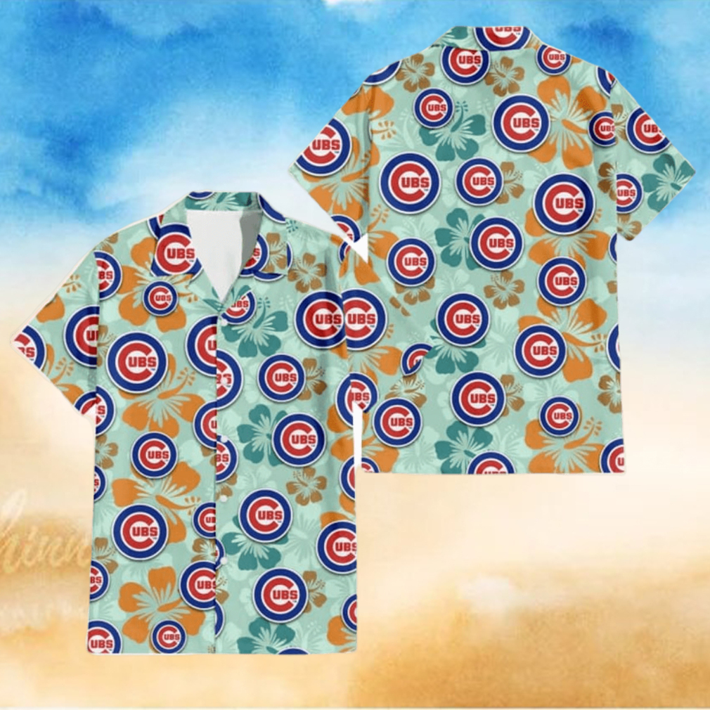 Best Chicago Cubs Orange Green Hibiscus Pale Green Background 3D Hawaiian Shirt Gift For Fans