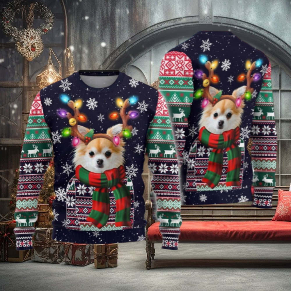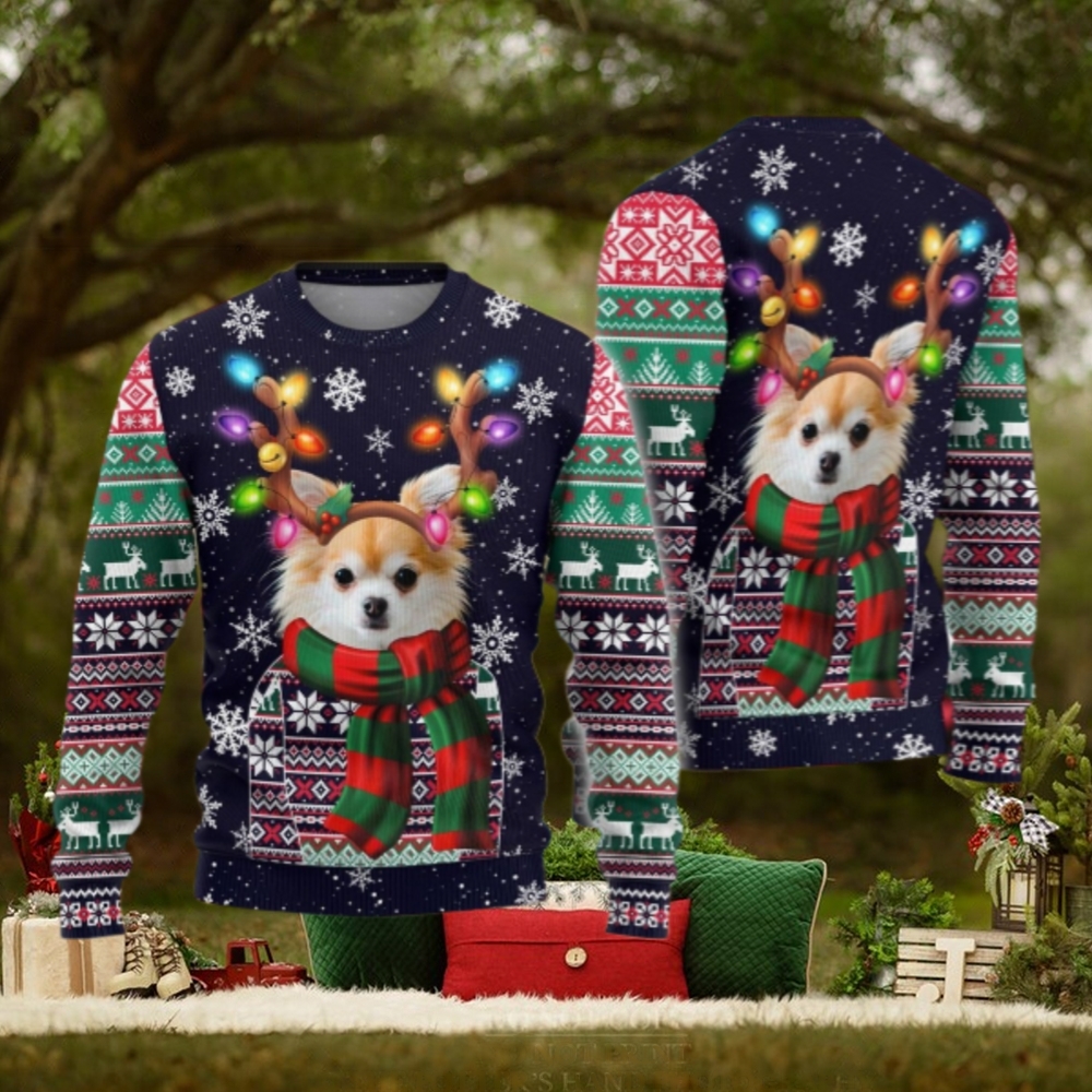 ()Chihuahua Christmas Ugly Sweater, Santa Hat Dog Sweater,