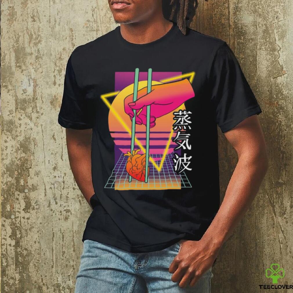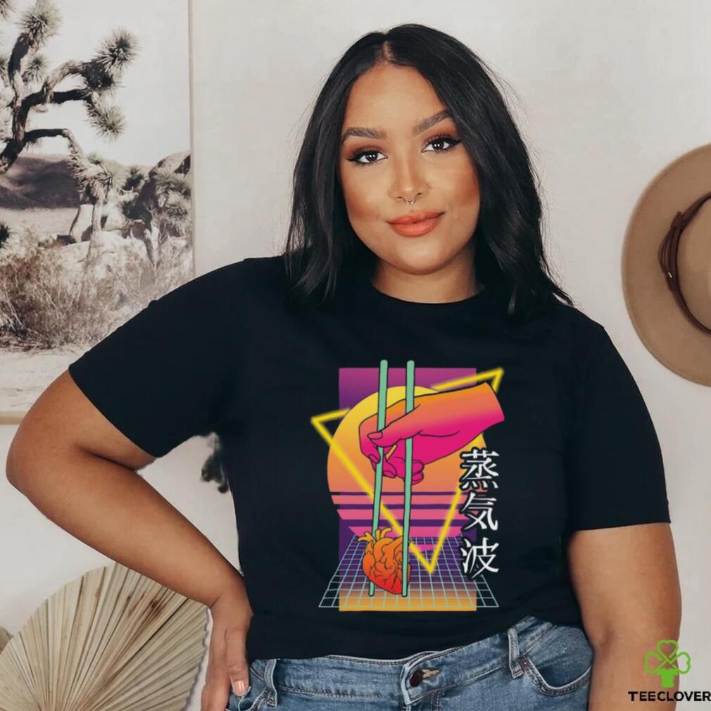 Best Chopsticks Neon Heart Retro Japan Artwork Cherry Blossom Kanji Art T Shirt