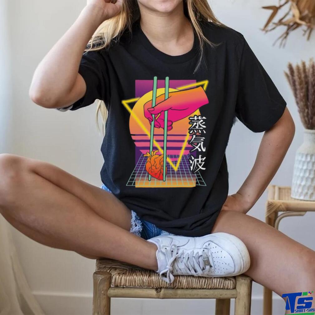 ()Chopsticks Neon Heart Retro Japan Artwork Cherry Blossom Kanji Art T Shirt, Hoodie, Sweater, Vneck, Unisex and T-shirt