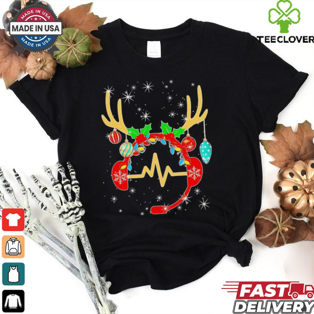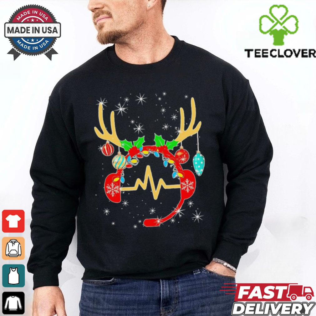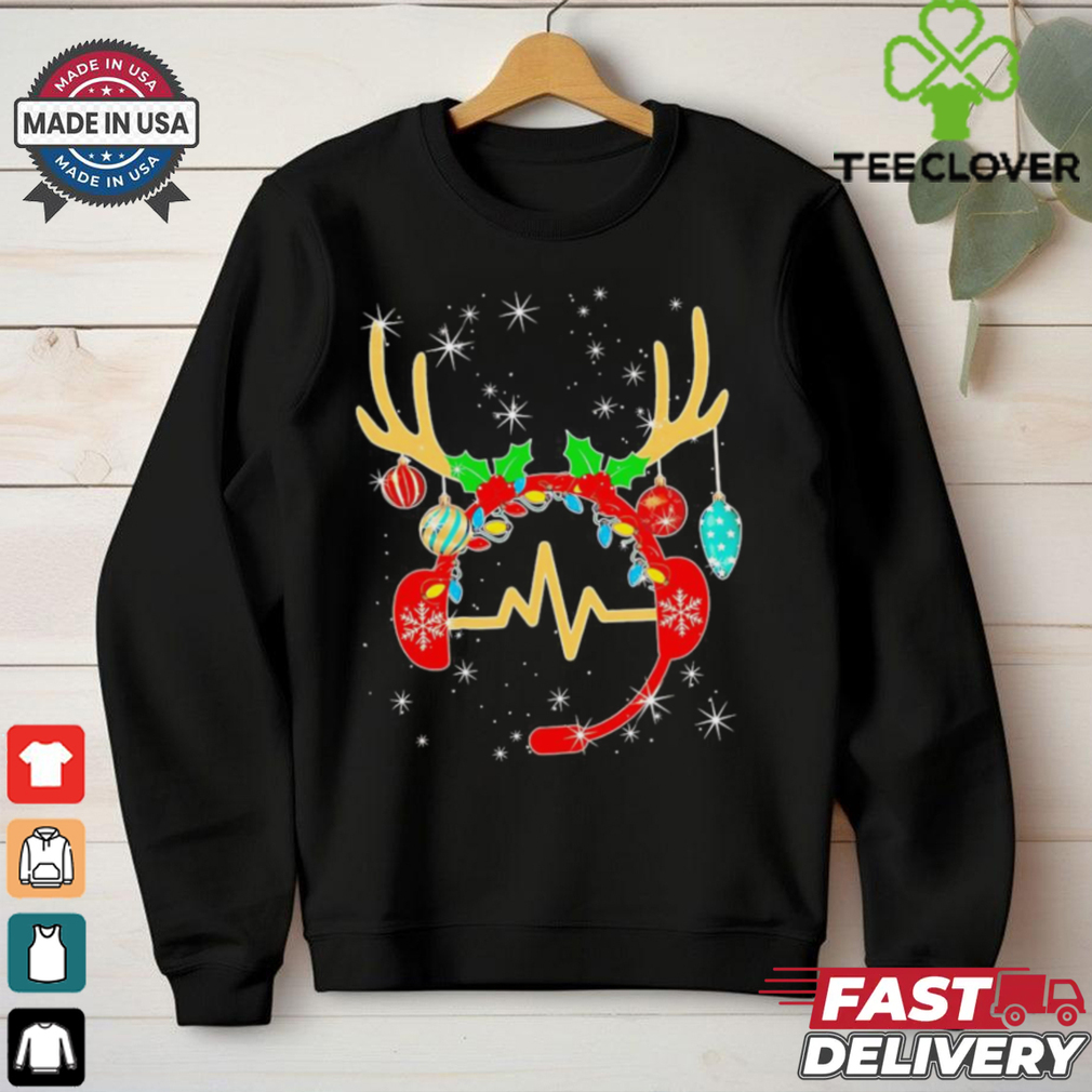 Christmas Gamer Reindeer Headset Heartbeat shirt