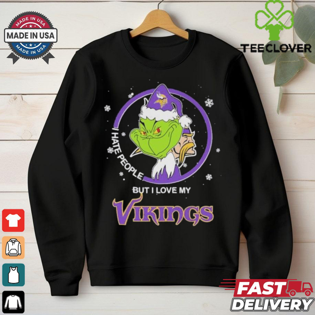 ()Christmas Grinch X Minnesota Vikings I Hate People But I Love My Vikings Shirt hoodie, tank top, sweater and long sleeve t-shirt: best style for you