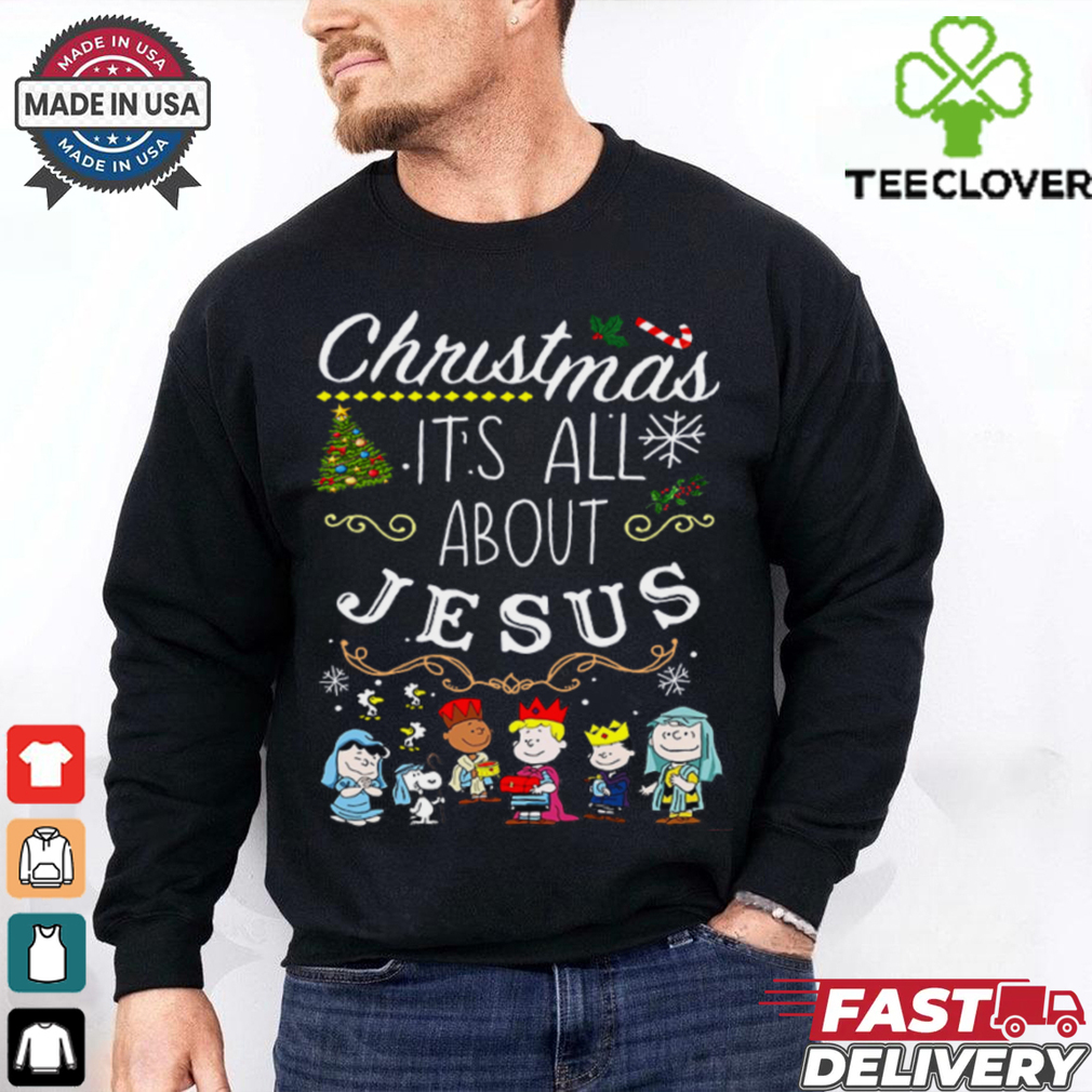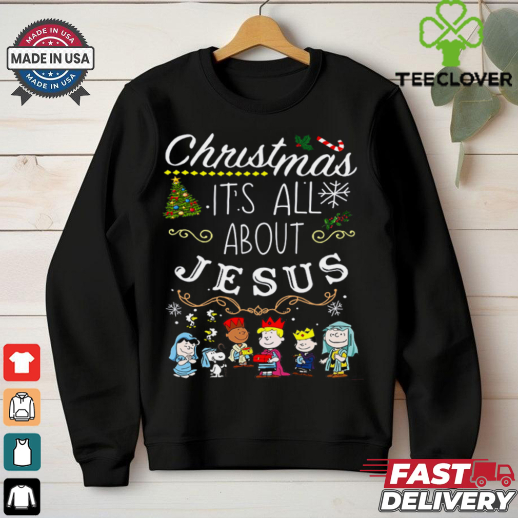 ()Christmas It_s All About Jesus Nativity Peanuts Characters T Shirt hoodie, tank top, sweater and long sleeve t-shirt: best style for you